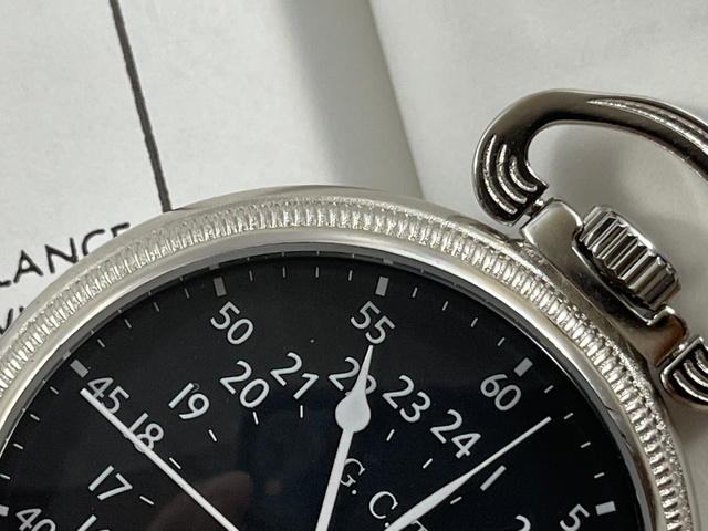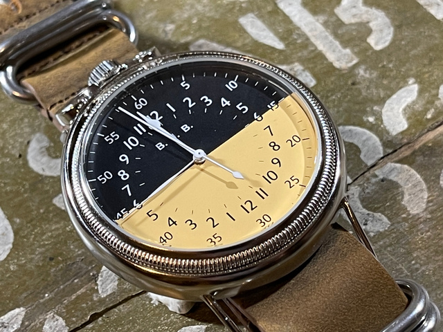 米軍ナビゲーション・ウオッチの中でも欠かすことのできないAN5740のポケットウオッチ。黒文字盤のAN5740とは異なり、本当に僅かな数しか現存しないマニアの中でも「幻」と言われている文字盤の復刻になります。とても希少で離長距離戦略爆撃に向かうほんの一部の飛行機乗り達に支給された事だけは間違いないようです。24時間のダイヤルを白黒で塗り分ける事により視認性が高く、直感的に午前午後を把握できるデザイン的にもすぐれた文字版です。