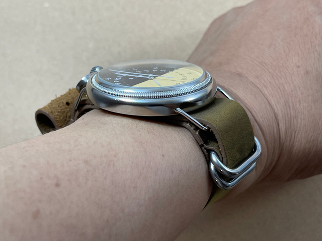 良い腕時計の条件として、腕に装着したサマがかっこいいかどうかが重要になってきます。この時計は置いておくより腕に装着している時の方が断然格好いいです。このバランスを作るのに時間が掛かりました。