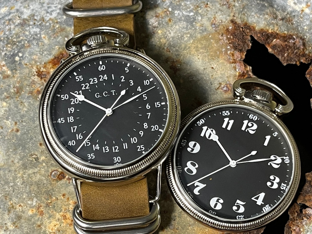 -右:懐中時計が1940年代のAN5740。 左:リサイズした弊社商品-