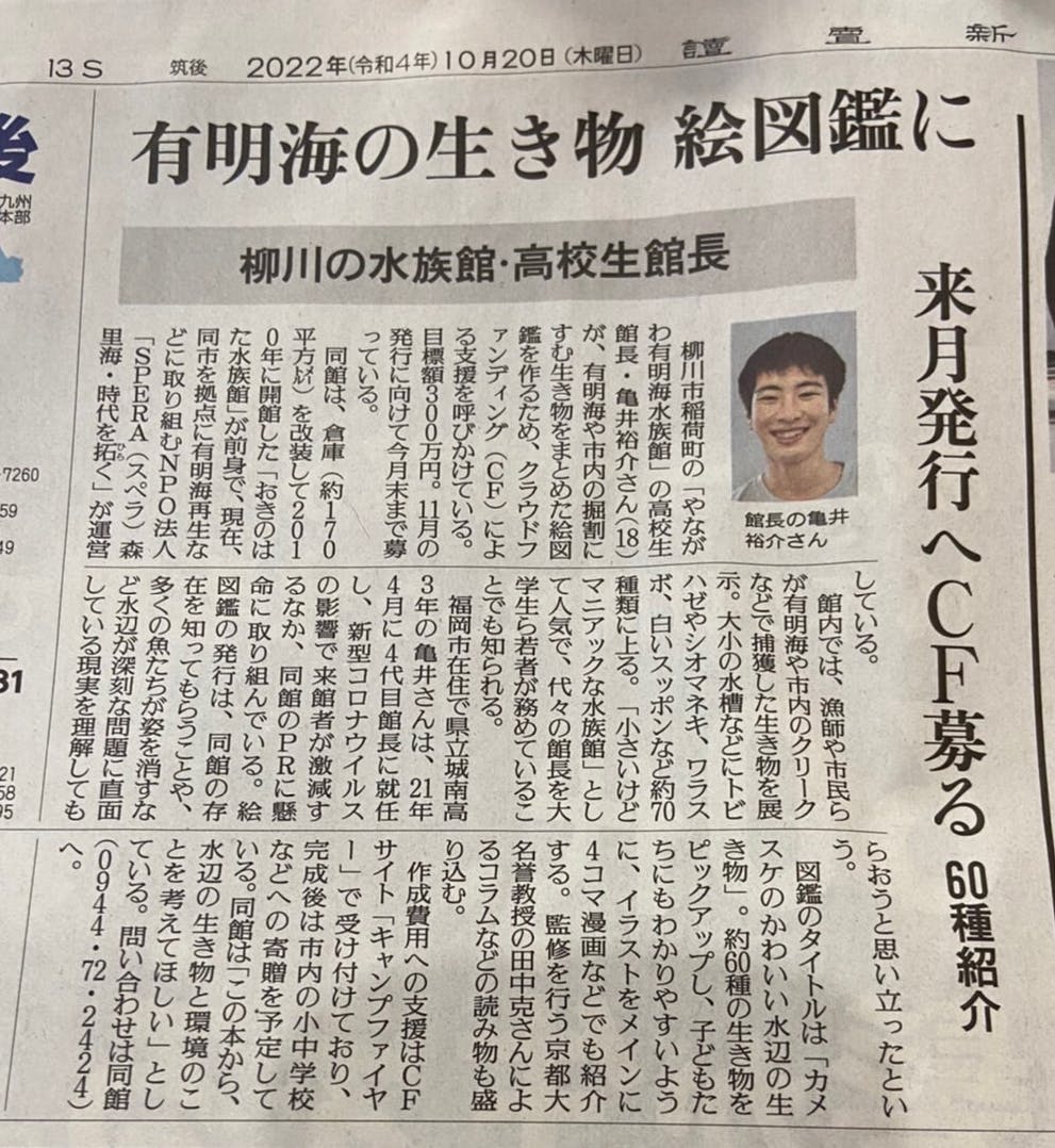 地元新聞の『有明新報』有明筑後版1面トップ記事として、亀井館長の絵図鑑発行の事、クラウドファンディングにチャレンジしている事を取り上げて頂きました。ありがとうございます‼︎