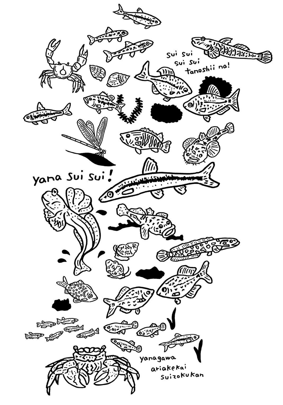 どれが欠けてもダメでした。この5つのピースが全部揃ったので、絵図鑑作成というプロジェクトをスタートする事が出来ました。私がやながわ有明海水族館に関わるようになったのは2021年の8月です。それまでは、仕事柄(地元の新聞社勤務)学生が館長をしている水族館が柳川にある!と言う事は知っていたものの、行った事はありませんでした。ところが、ある日を境に、仕事が休みの日(土曜日)は必ず水族館に顔を出すようになりました。特段魚好きではないのですが、でも、何か惹かれる物があって、それは『足が向く』と言う表現が正しいかと思います。そこで、NPO法人の内山さんご夫婦や亀井館長、縁の下の力持ち梅崎敏伸さん、水族館設備の工事などにいつもお力添え頂く松石洋一さん、柳川の事や生き物に詳しい大坪鉄治さん、3代目館長の宮崎優作さん、そしてNPO法人SPERAのみなさんと知り合って、たくさんの魚たちと出会って、そして絶滅危惧種や外来種の事を知って、環境、そして自然と人との共存について興味を持つようになって…今に至っています。