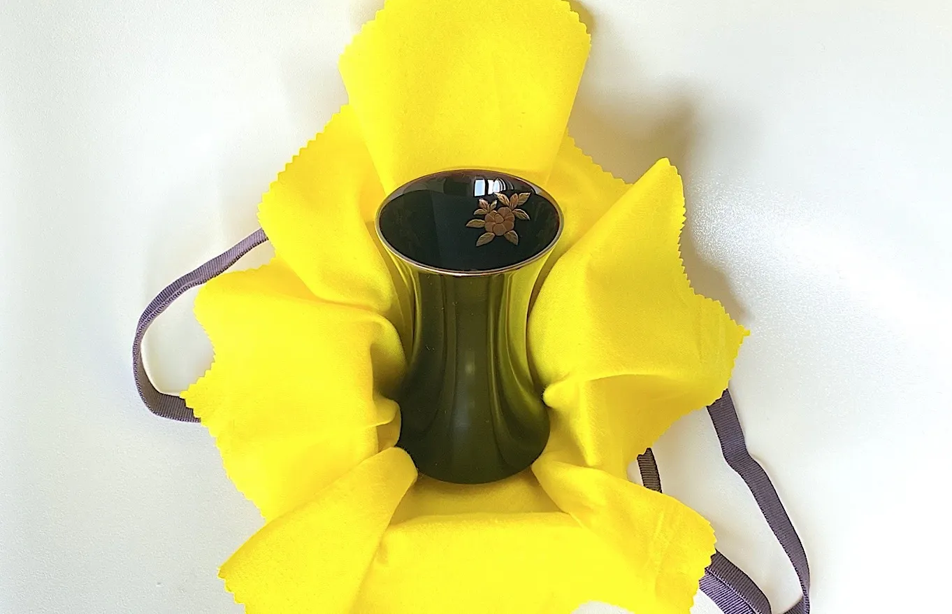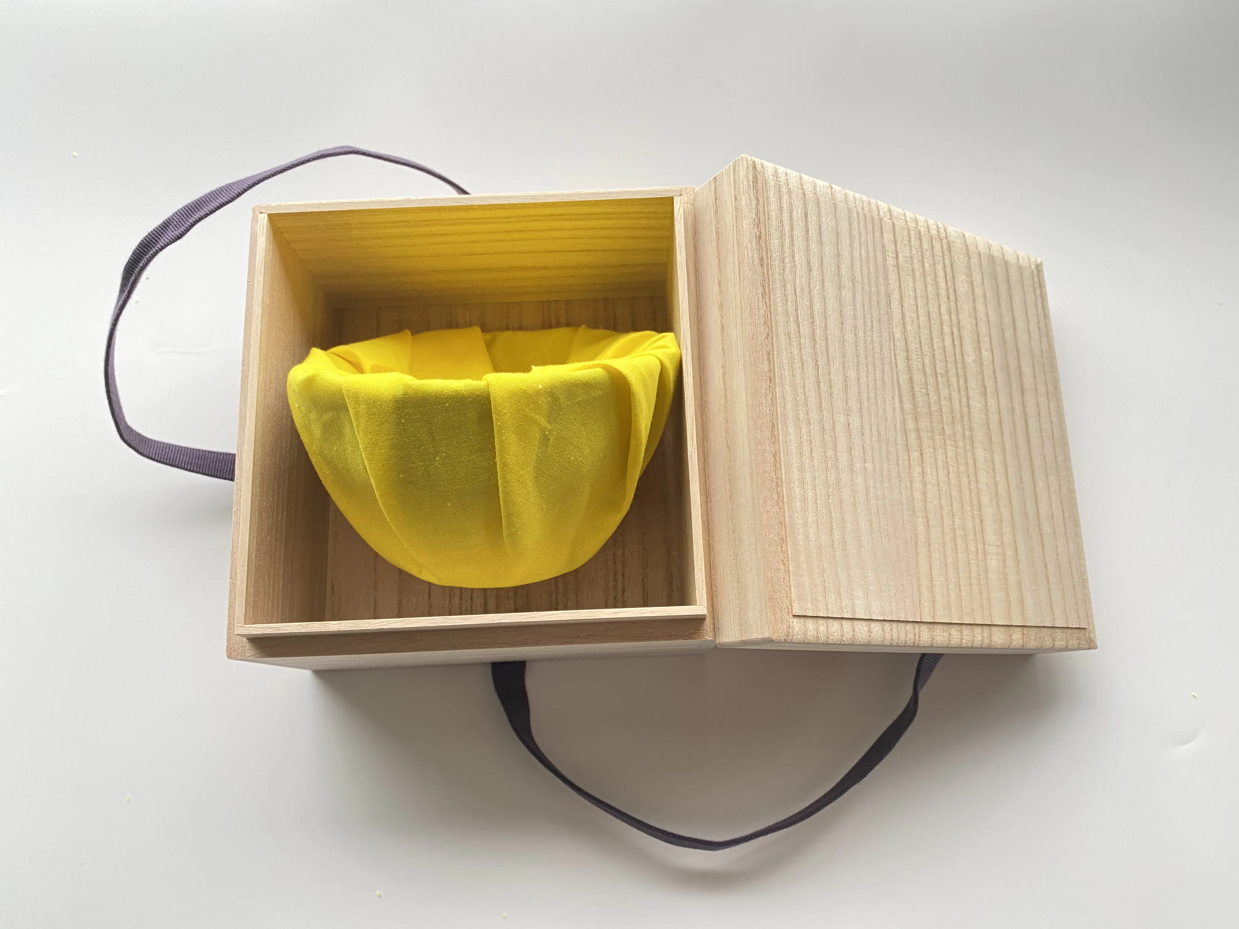 今回のクラウドファンディングでは、支援していただく漆器の魅力を一人でも多くの方に実際に知っていただけたらと思い、作品をリターンとさせていただきます。それぞれ天然ウコン染布、北米産の高級桐箱で梱包されています。