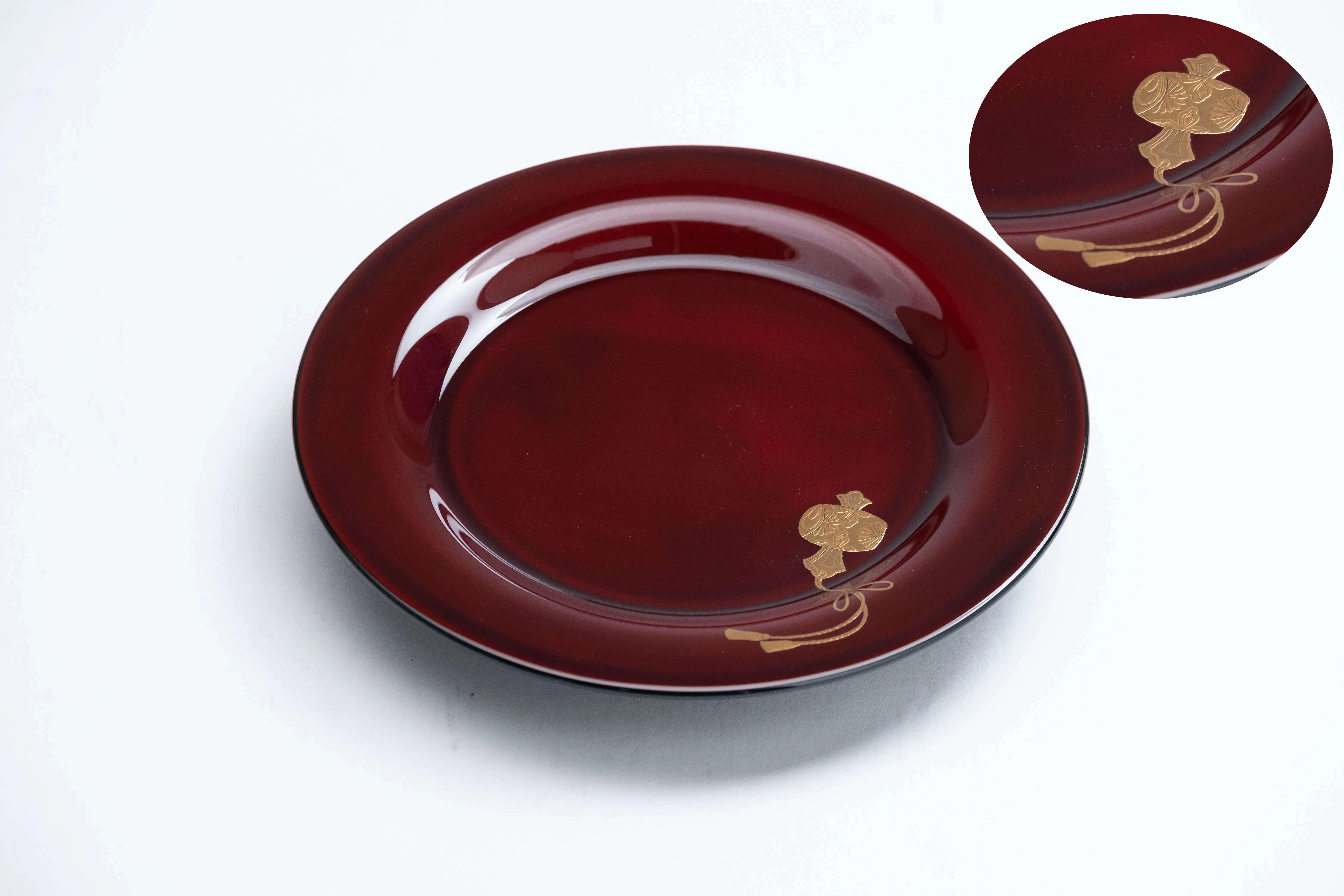 Tsuzumi Red Tame 蒔絵入り(朱合側:打ち出の小槌、椿、軍配のいずれか、朱側:鶴、亀のいずれか)参考価格(税込)110,000円