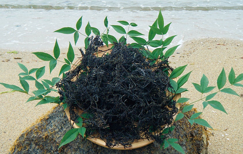 ▼松山ひじき:潮の流れが速くきれいな松山の海で育ったヒジキは、島人が受け継ぐ伝統の宝物。芽と茎のバランスが良く、カルシウムや食物繊維を多く含みます。