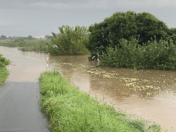私たちのりんご畑は市内で一番大きい岩木川の河川沿いにあるのですが、畑がすっぽりと水没してしまうほど、水位が上昇しました。一時は警戒レベル最大の避難警報が出るほど危機的な状態で、場所によっては畑どころか家が浸水被害にあう地域もありました。