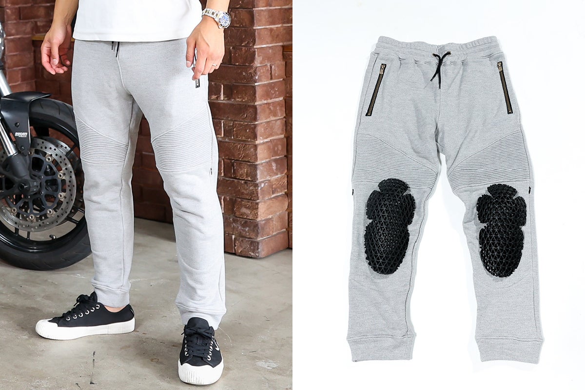 今回のテーマはスウェットパーカー&パンツです。ラフで日常的な見た目なのに「プロテクター入り」かつ「耐摩耗性」も併せ持ちます。