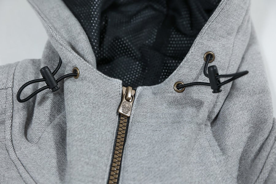 パーカー・パンツともに、ジッパーにはすべて撥水のものを使用しています。