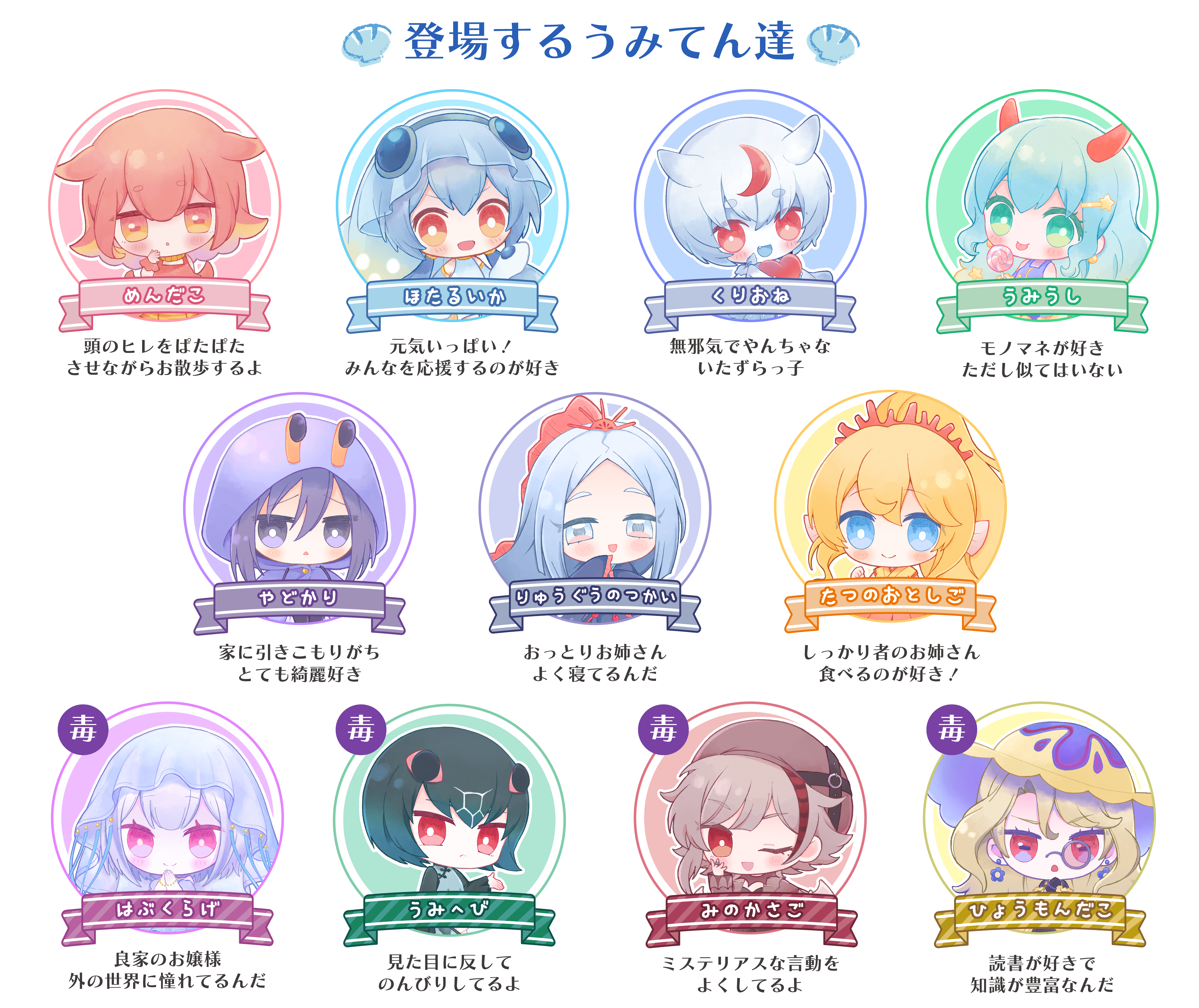 購入してくださった方のお好きな海の生き物を擬人化したイラスト(1体まで)を提供いたします!