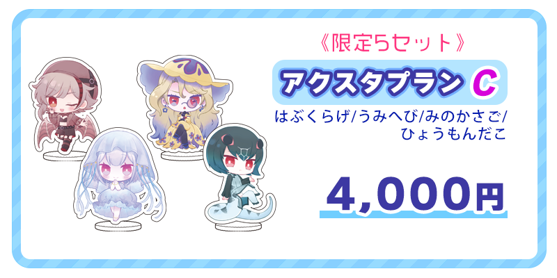 5セット限定!『ぼくらのうみ』アクリルスタンド(めんだこ/ほたるいか/くりおね)がセットになったプランです。