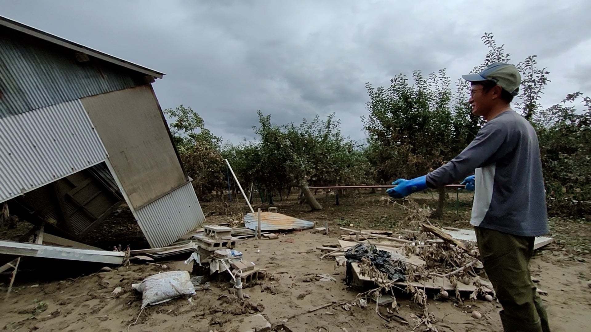 しかし、今回は短期間で記録級の大洪水が2回も来てしまい、りんごの収穫ができないどころか、樹齢50年の木が30本以上倒木し来年以降も収穫できない状態です。