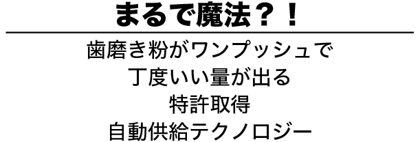 ワンプッシュするだけで、本体内に詰めた歯磨き粉が、ブラシの中央に、魔法のようにピッタリな量の歯磨き粉を出してくれます。