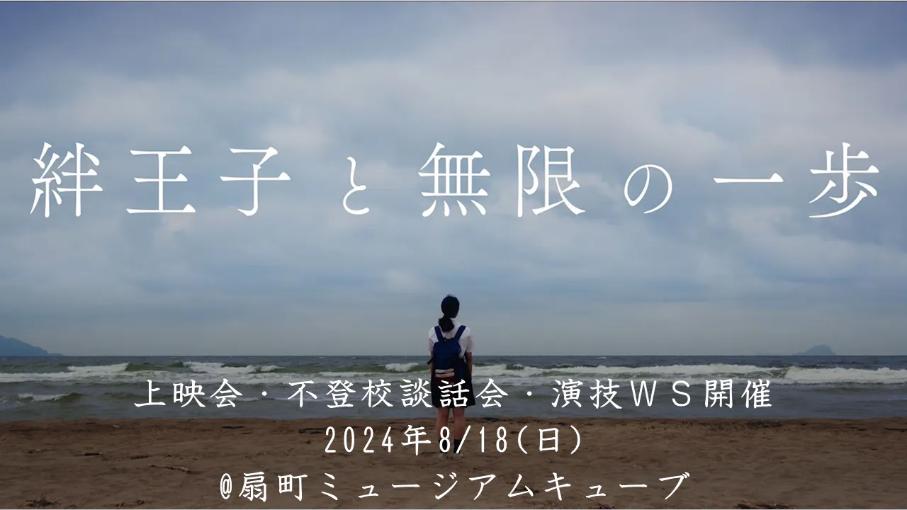 2024/07/17 17:318/18(日) 上映会・談話会・演技WSのお知らせ関東やドイツなど映画祭を回ってきた映画『絆王子と無限の一歩』不登校を題材に取材を重ねたドキュメント性の高さや青春映画としてのエンターテイメント性を評価され多数の賞を受賞、映画祭への誘致や教育機関での研修動画として採用されました。撮影から2周年、海外上映を記念して大阪での一般上映、談話会、竹田監督による演技ワークショップを開催いたします!映画『絆王子と無限の一歩』大阪上映!日程:8/18(日)会場:扇町ミュージアムキューブ大阪メトロ堺筋線「扇町」駅から徒歩3分JR環状線「天満」駅から徒歩7分※同日、同施設にて上映会・不登校についての談話会・演技WSの3つの企画を行います。同じ施設内ですが部屋や予約方法が異なりますのでご注意ください。〇映画の上映〇10:30 ~ 12:05 扇町キネマにて竹田監督・カイト役:古谷依織・サクラ役:桜木ひまりのアフタートーク有料金は同施設の通常映画料金予約は上映1週間前より扇町キネマ公式サイトにてhttps://omcube.jp/kinema/〇不登校についての談話会〇12:15 ~ 13:15 マチソワ(1Fサロン)ゲスト:山本航平氏 明誠高等学校北大阪SHIP代表無料ご予約 https://forms.gle/Ro72oBMN1oqg9Eay8〇竹田監督WS『心をゆさぶる演技』〇13:30 ~ 20:00 CUBE05U-24 3000円 一般 5000円演技経験者向けの演技WSです。予約者の方には事前課題をメールにて7月末にお送りいたします。ご予約 https://forms.gle/QtGguG9C9jDa74TT6この機会に是非、おこしください。・絆王子と無限の一歩あらすじハルコが不登校になった。理由は誰も知らない。幼馴染・カイトは、ハルコの書く小説「絆王子と無限の一歩」を介して彼女の気持ちを知ろうとする。不登校児・ヒバリはハルコを不登校仲間に引き入れようとする。クラスの優等生・サクラはハルコを学校に連れ戻すために策を練る。それぞれの求める”正しさ”が、苦い痛みと共に絡み合う。実体験を基に描かれる、答えのない問題と向き合う少年少女たちの物語。 もっと見る映画祭出展中!
