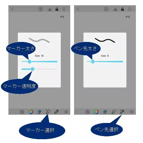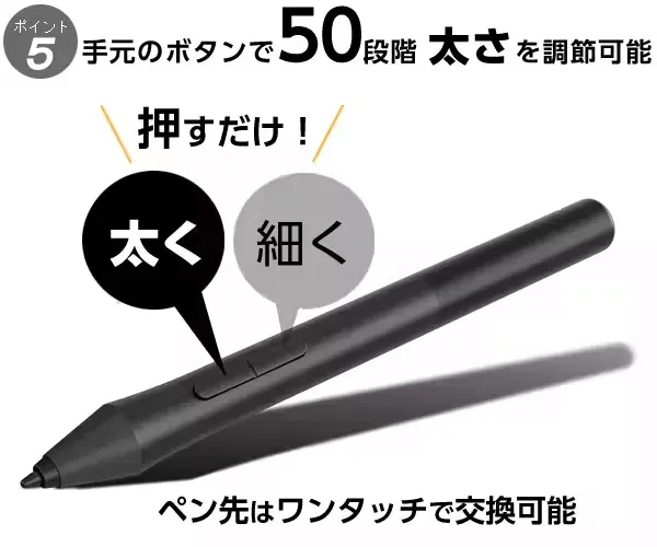 ・専用アプリからだけでなく、手元でも線の太さを調整出来ます。