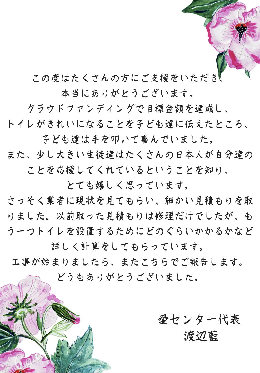 愛センター代表 渡辺藍さんからお礼のメッセージ