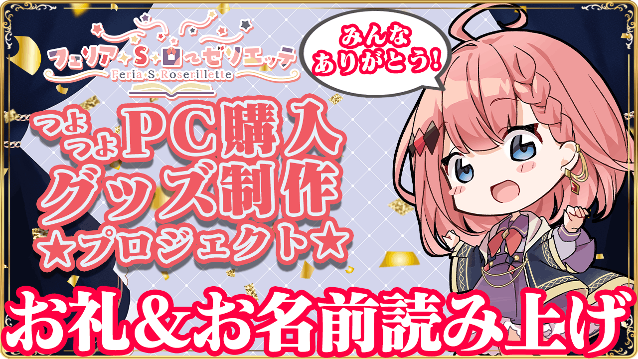 今回の目標は「つよつよPCの購入」と「グッズの制作」として、みなさんに応援して貰えたらと思っています♪