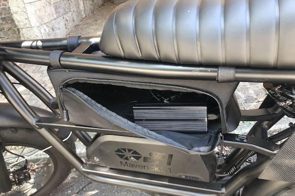 フレームバッグに充電器を入れておけば勤務先や移動先で気軽にバッテリーを充電出来ます。フレームバッグは脱却式なのでアディショナルバッテリーを付ける際には簡単に取り外せます。