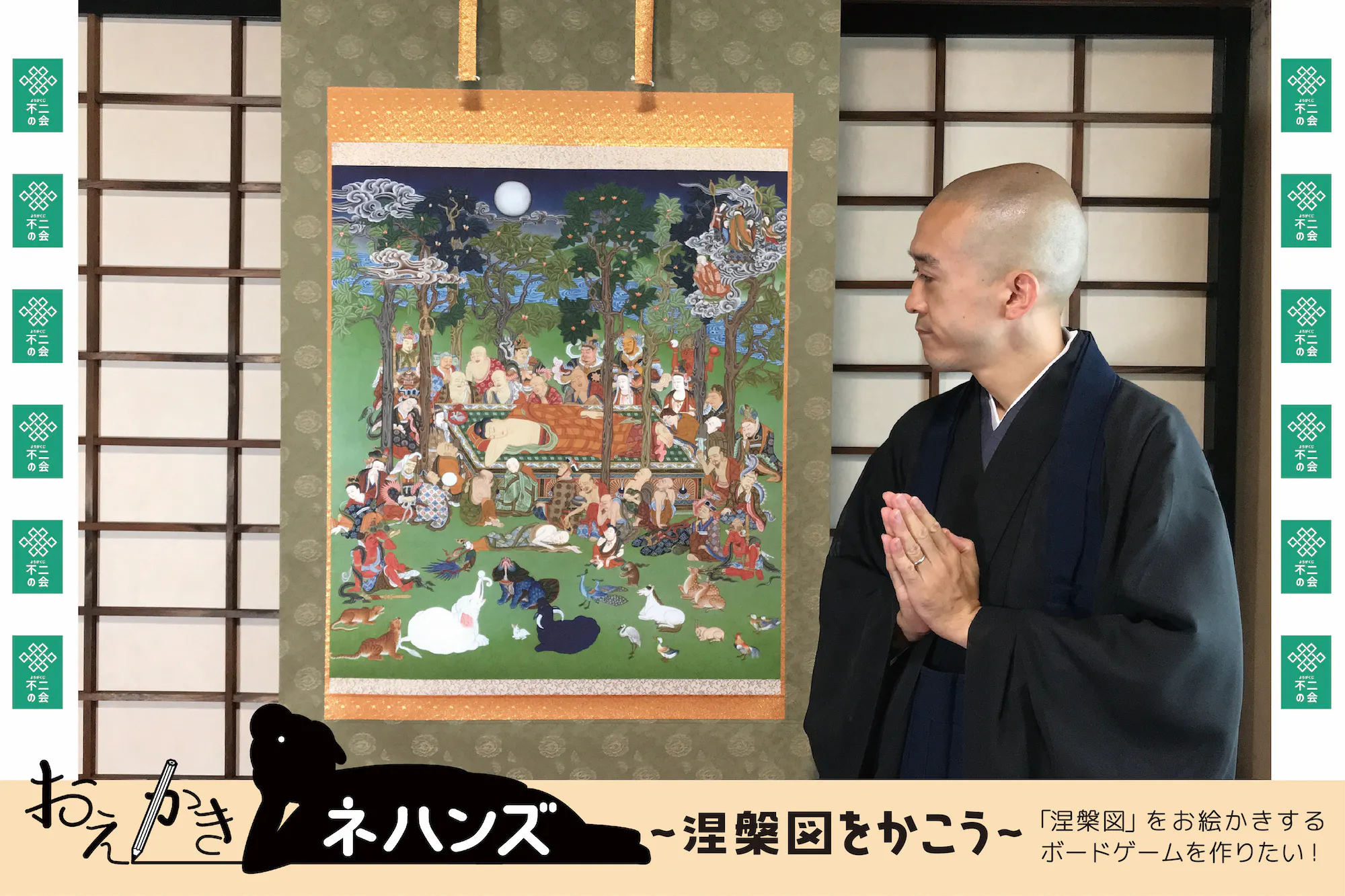 多くの方に「涅槃図」という仏教美術を知っていただきたい!皆さんにお寺のボードゲームをお届けしたい!よりよい状態でこのゲームを完成させたい!