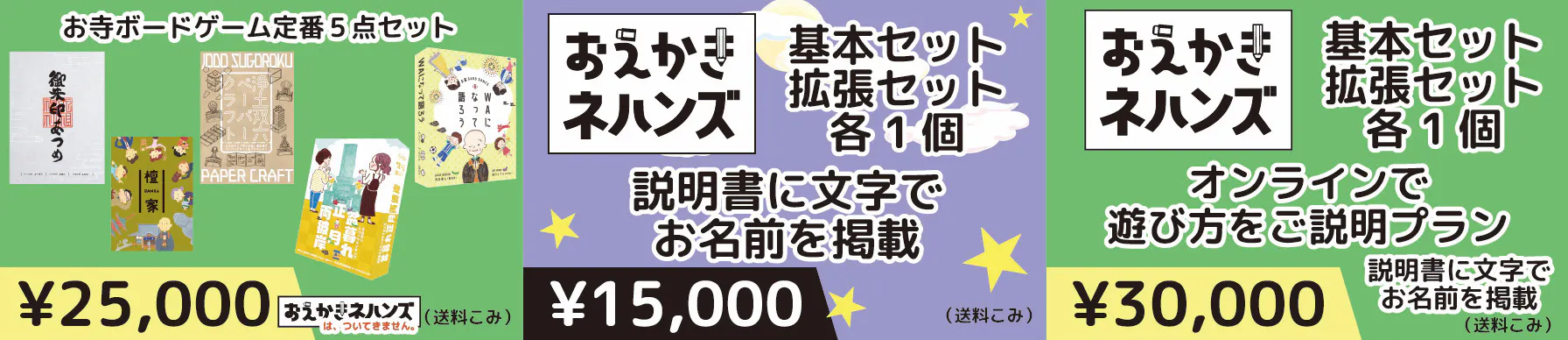 ・¥10,000◯おえかきネハンズ 基本セット+拡張セット、お寺さまへのお供えにもピッタリ?ザ・仏教ボードゲームセット(郵送):『おえかきネハンズ』基本セット・拡張セット 各1個(送料込み) (『おえかきネハンズ』基本と拡張は、製作後にレターパックプラスにて発送します。予定)