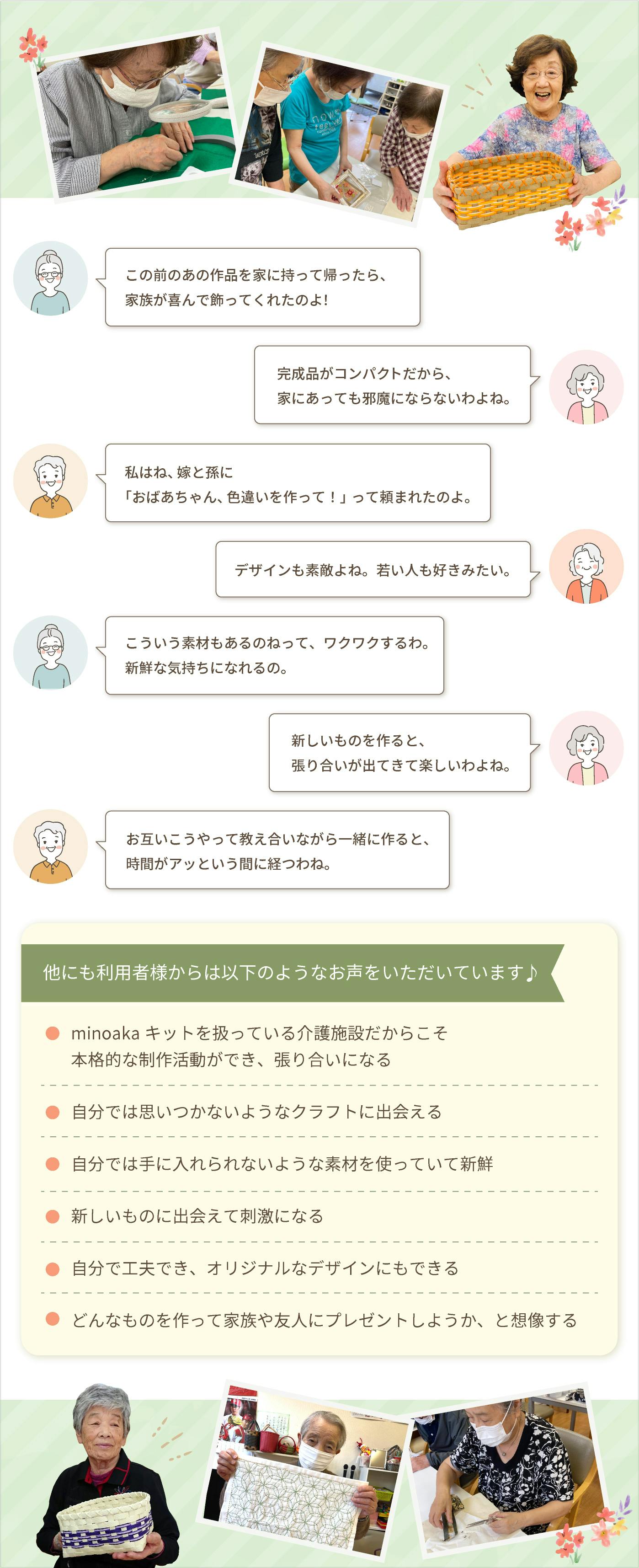 その後も利用者さまから「看護師さんにあげたら喜ばれた」「友人に見せたら是非作りたいと言われた」というエピソードがたくさん舞い込み始めました!