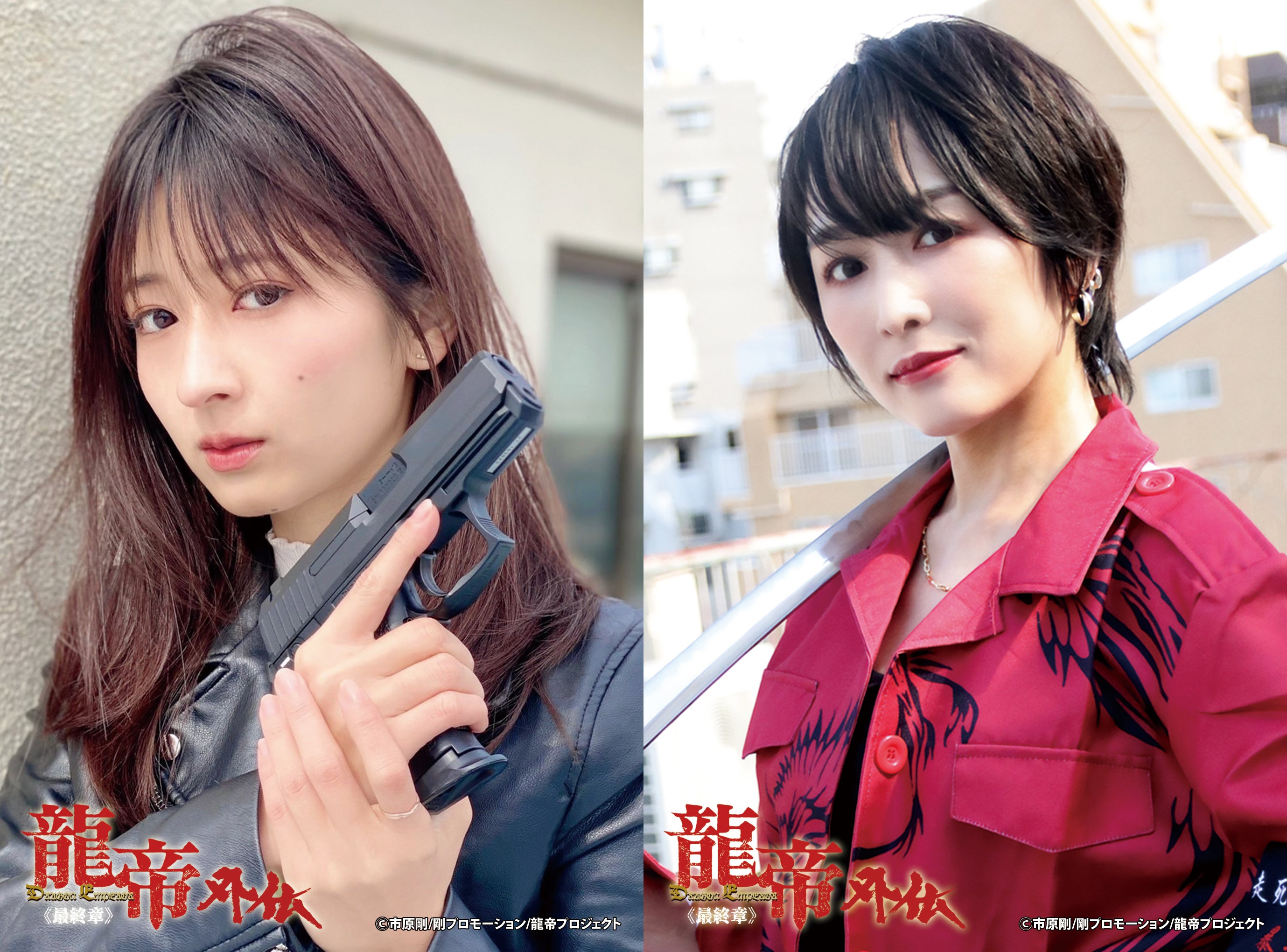 そして、前作に引き続き〝歌舞伎町の顔役〟舘川竜士役に市原剛、元レディース総長のバーのママ・美森沙耶役に元ミスヤンマガ準グランプリのグラドル・杏さゆり、龍帝直属諜報機関「八龍傑」麗愛役に中井杏奈、ほか松岡美沙、杉田友里、ばんこくら龍帝組お馴染みのレギュラー陣、オーディションにて新メンバー入りした現役グラドル〝みんなの元カノ〟あずあずこと藤田あずさ、珠羅、山本夢ら若手女優陣が脇を固め、さらに『ビー・バップ・ハイスクール』城東退学組・柴田&西こと小椋正と永田博康、大ヒットVシネマ『日本統一』『極道の紋章レジェンド』シリーズの大山大介、『科学戦隊ダイナマン』ダイナピンク/立花レイこと萩原佐代子、『超電子バイオマン』ピンクファイブ/桂木ひかること牧野美千子、『世界忍者戦ジライヤ』磁雷矢/山地闘破こと筒井巧ら特撮ヒーロー俳優のレジェンドも引き続きゲスト出演。そして、『百獣戦隊ガオレンジャー』の悪の幹部・ツエツエこと斉藤レイが龍帝組初参戦。さらに『押忍!空手部』主人公・高木義志こと松田優が特別出演するなど、『龍帝』シリーズ最終章に相応しい豪華なキャスティングが実現した!!