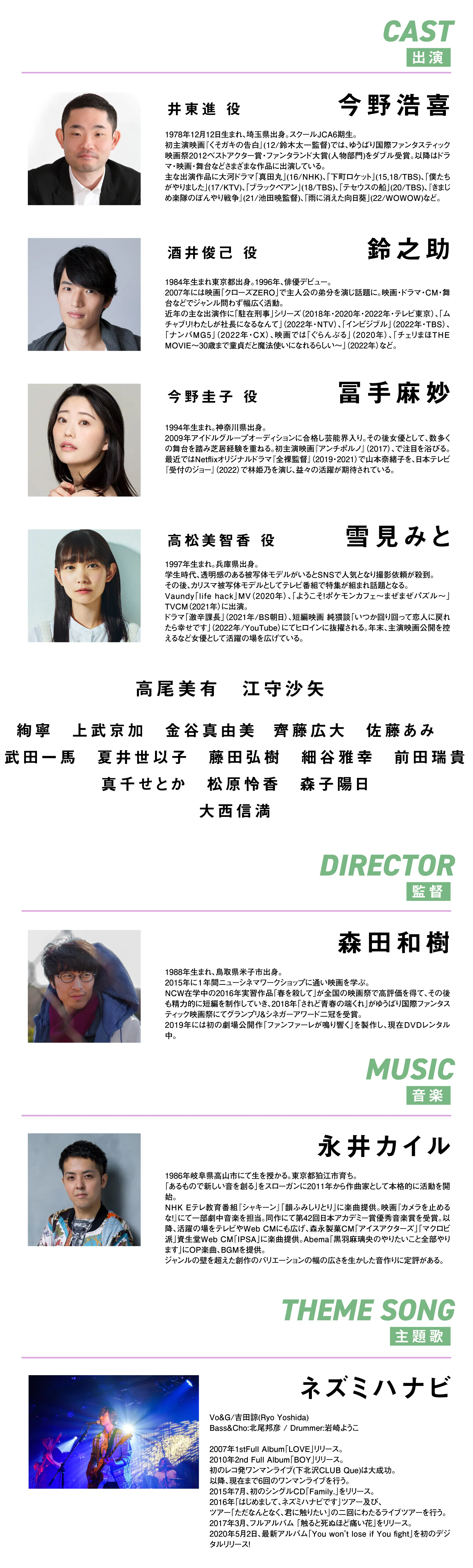 活動報告のポッドキャスト、映画を作る側のみなさんの裏話おもしろいです。今作はとってもスピーディーな制作だったんですね! キービジュアルや特報も公開されてワクワクしてます!手書き文字のタイトルが素敵です。