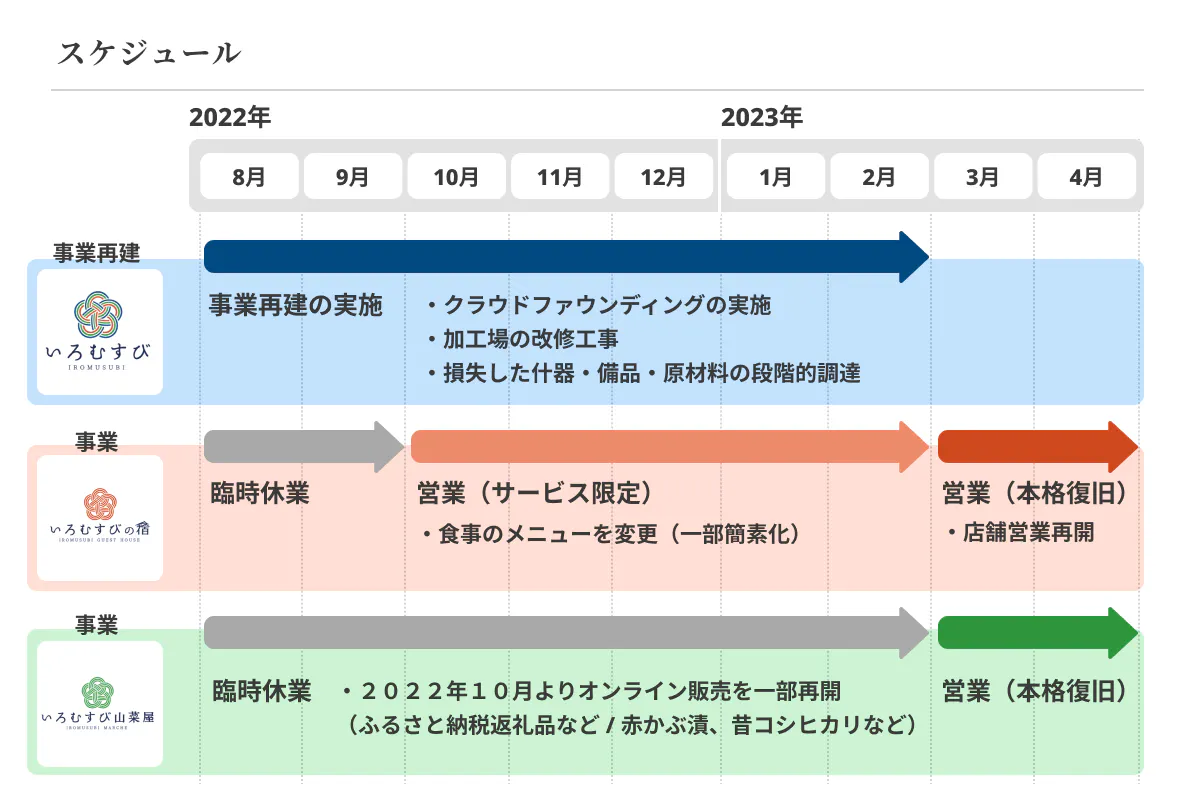 営業再開に向けたスケジュールは以下の通りです。