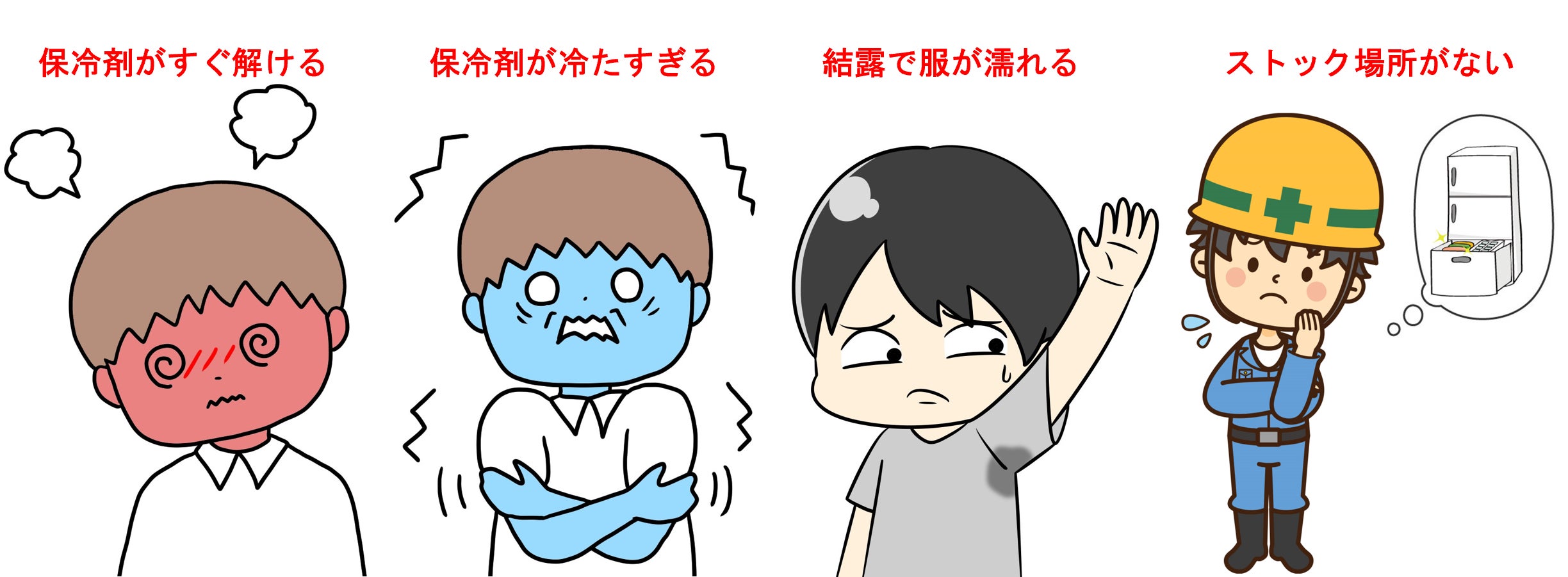 従来の保冷剤使用の冷却ベスト同様に、私たちが開発した初期の保冷ベストはモニター様から多くの不満が出てまいりました。