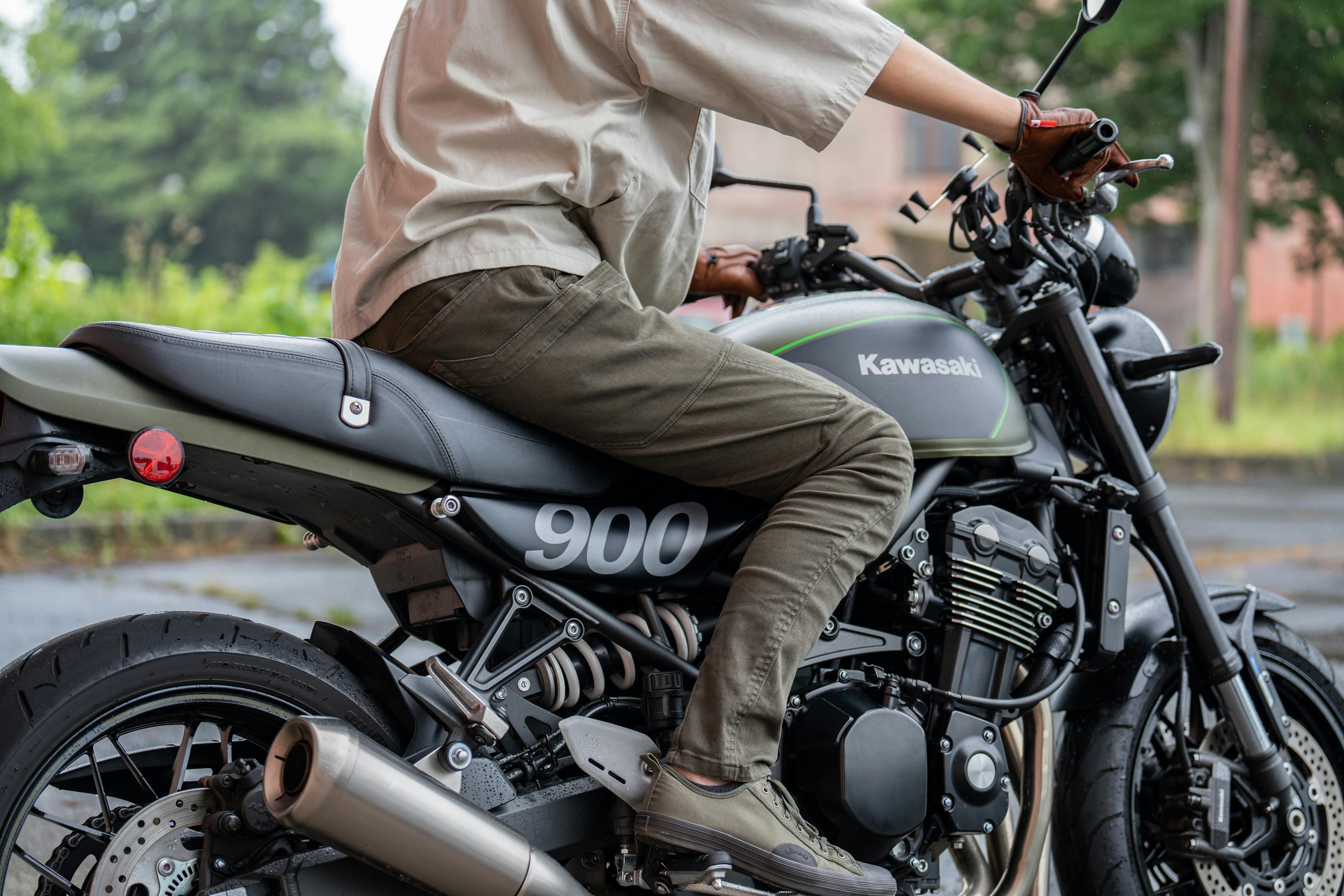 プロテクターを入れていても違和感なく穿くことができるRD-902ライディングキャンプパンツ。まるでプロテクターが入っていないかのようなスタイルです。
