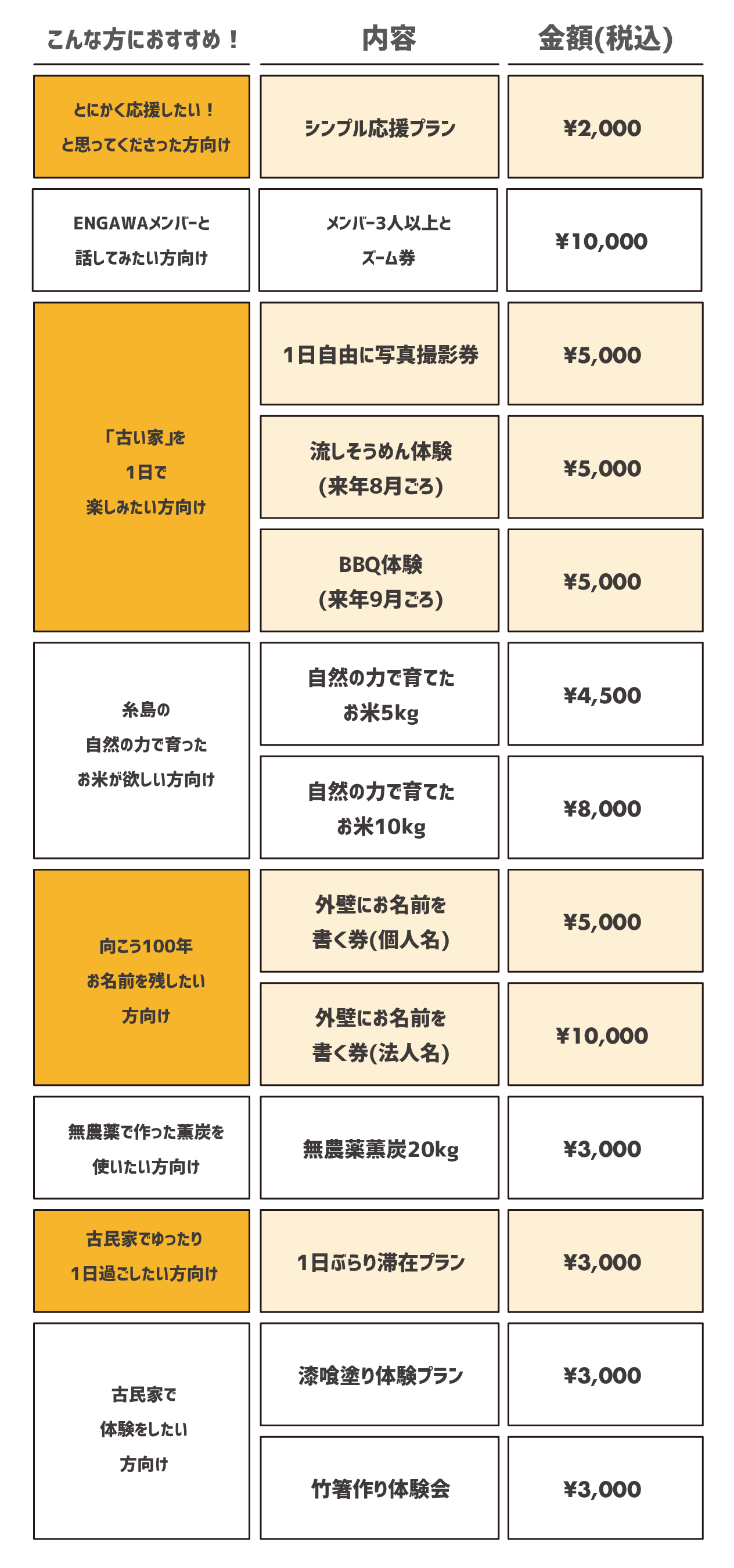 また、残りの金額は、交流の要となるゲストルームの改装、及び地域の人と住まう学生の交流拠点となるキッチンの改装や古民家外構の整備費用に充てさせていただきます。