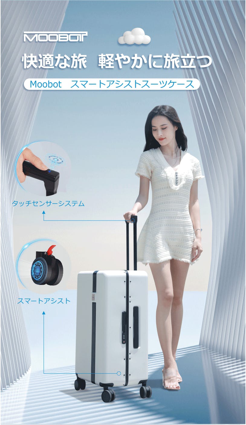 みなさま、こんにちは! MOOBOT株式会社です。私たちは、スマートスーツケースを研究開発する会社です。以前海外の会社と共同開発したAI自動追尾キャリーケースは、現在世界30カ国以上で販売されており、累計販売数5万個を突破しました。市場調査とお客様からのフィードバックに基づき、MOOBOTスマートアシストスーツケースを開発しました。すでに日本で商標登録を行いました。重い荷物の持ち運びから解放されてほしいという思いから、私たちはこれからもハイクオリティー・ハイテクノロジーのスーツケースを開発、製造していきます。みなさまの応援が私たちを前進させる原動力です。