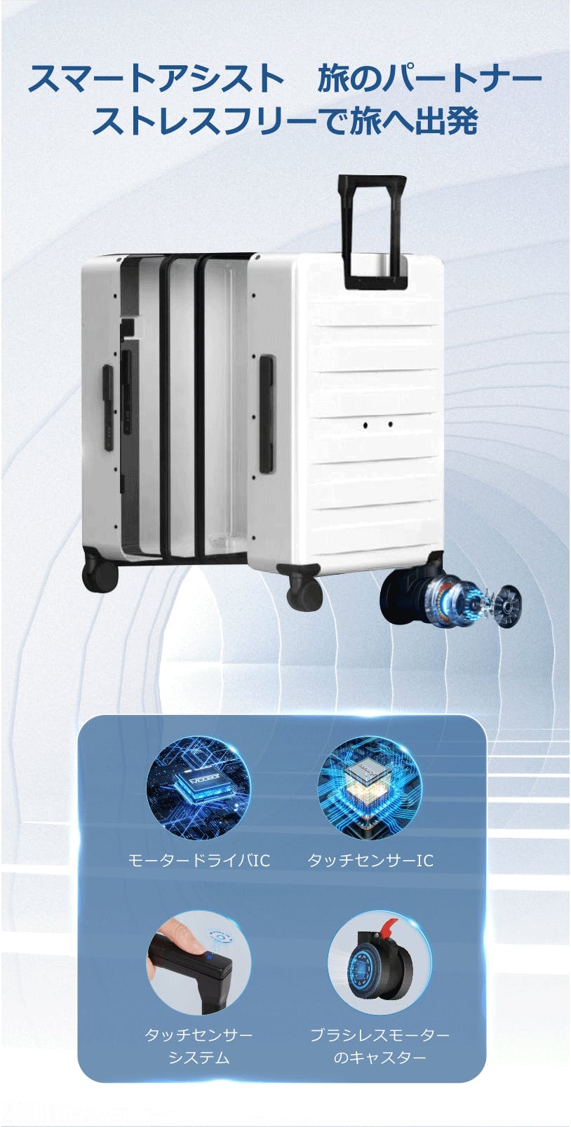 お客様からのフィードバックを受けて、私たちは、楽に押したり引いたりすることができるすなわちアシストしてくれるスーツケースを開発しようと決めました。1年以上の研究開発を経て、よりリーズナブルで、より実用的なスーツケースが誕生しました。