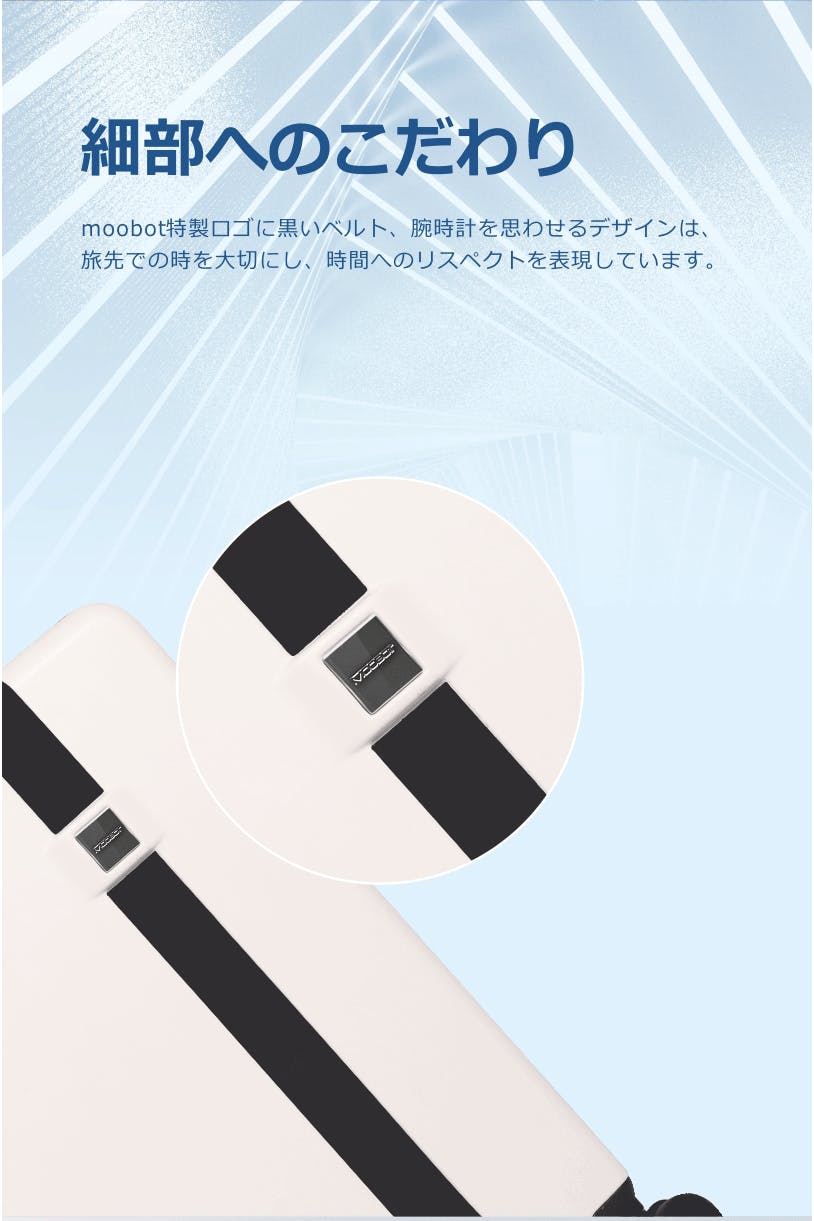 MOOBOTスーツケースの本体は、ドイツのバイエル社製のポリカーボネートを使用しております。