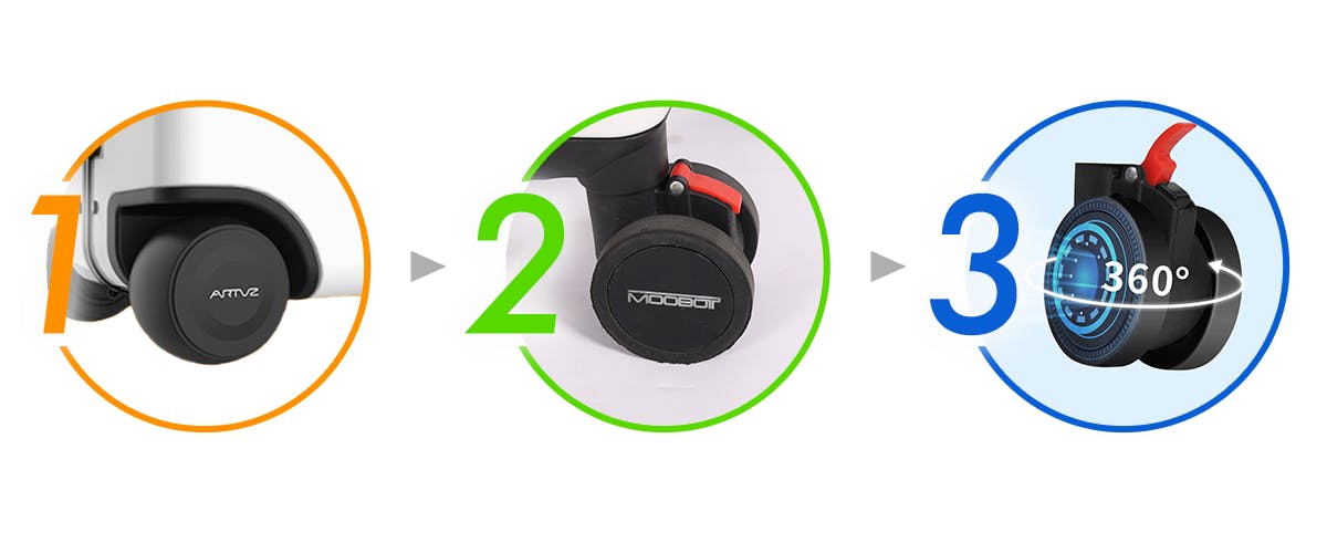 MOOBOTは静音タイプの360度回転可能なキャスターを使用しており、出張などで帰宅が遅いときも家族を起こしてしまう心配はありません。MOOBOTに使われている各種技術は現在特許取得出願中です。