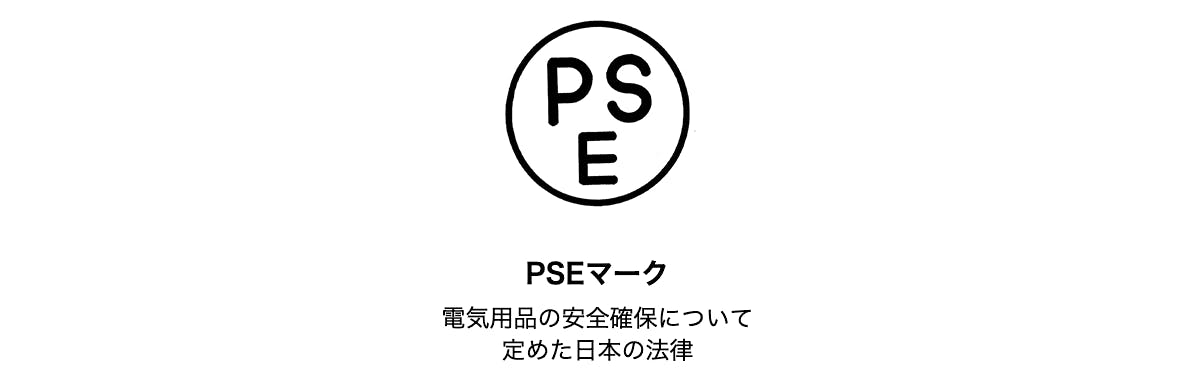 PSEとは、日本政府が定める電気用品安全法のことであり、その取得を義務づけられています。安全基準に適合した電気用品だけに貼り付けられる表示がPSE認証(PSEマーク)です。