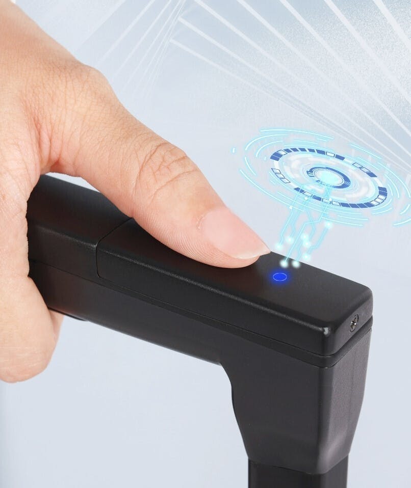 MOOBOTは、前回のAI自動追尾キャリケースのデザインを採用しながら、操作方法を簡易化しました。タッチボタンに軽く触れるだけで、アシスト機能を起動することができるようになりました。