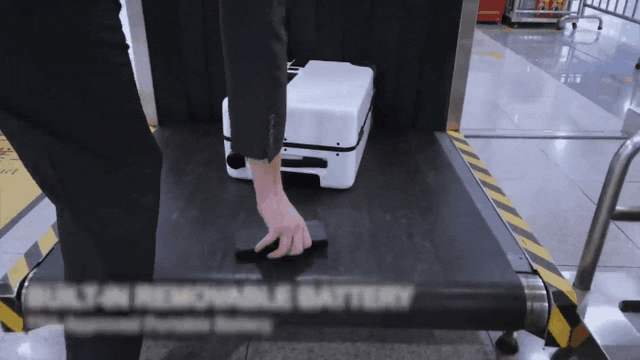 着脱式バッテリーは、ボタンを押すだけで簡単に取り出すことができます。こちらのバッテリーは、全ての航空会社の機内持込みが可能です。スーツケースの預け入れをご希望の場合は、バッテリーを取り外し、機内へ持ち込むことをお勧めします。
