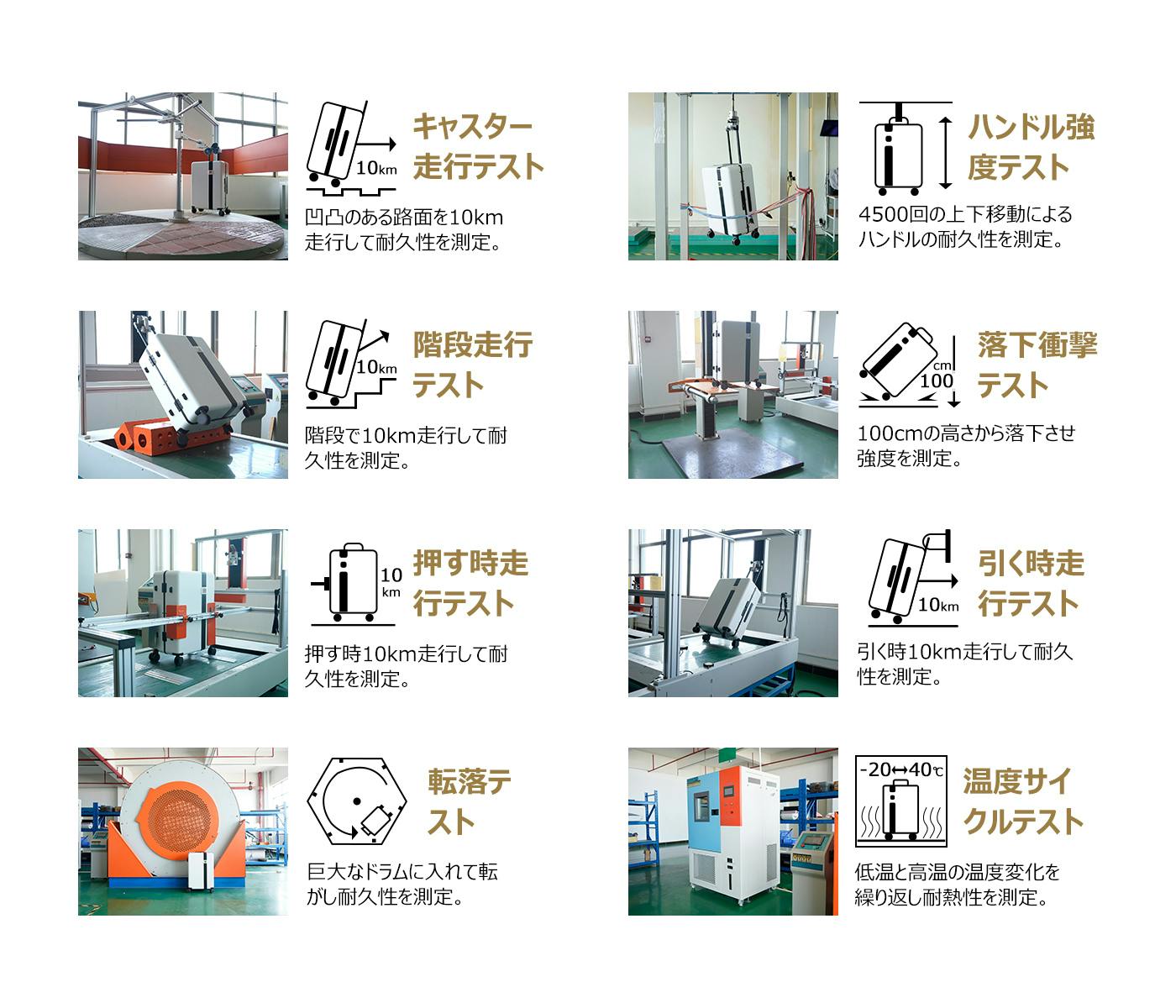 MOOBOTは徹底した品質テストを行っています。お客様に安心してご使用いただけるよう厳しい品質テストをクリアした高品質なアシストスーツケースをお届けしています。