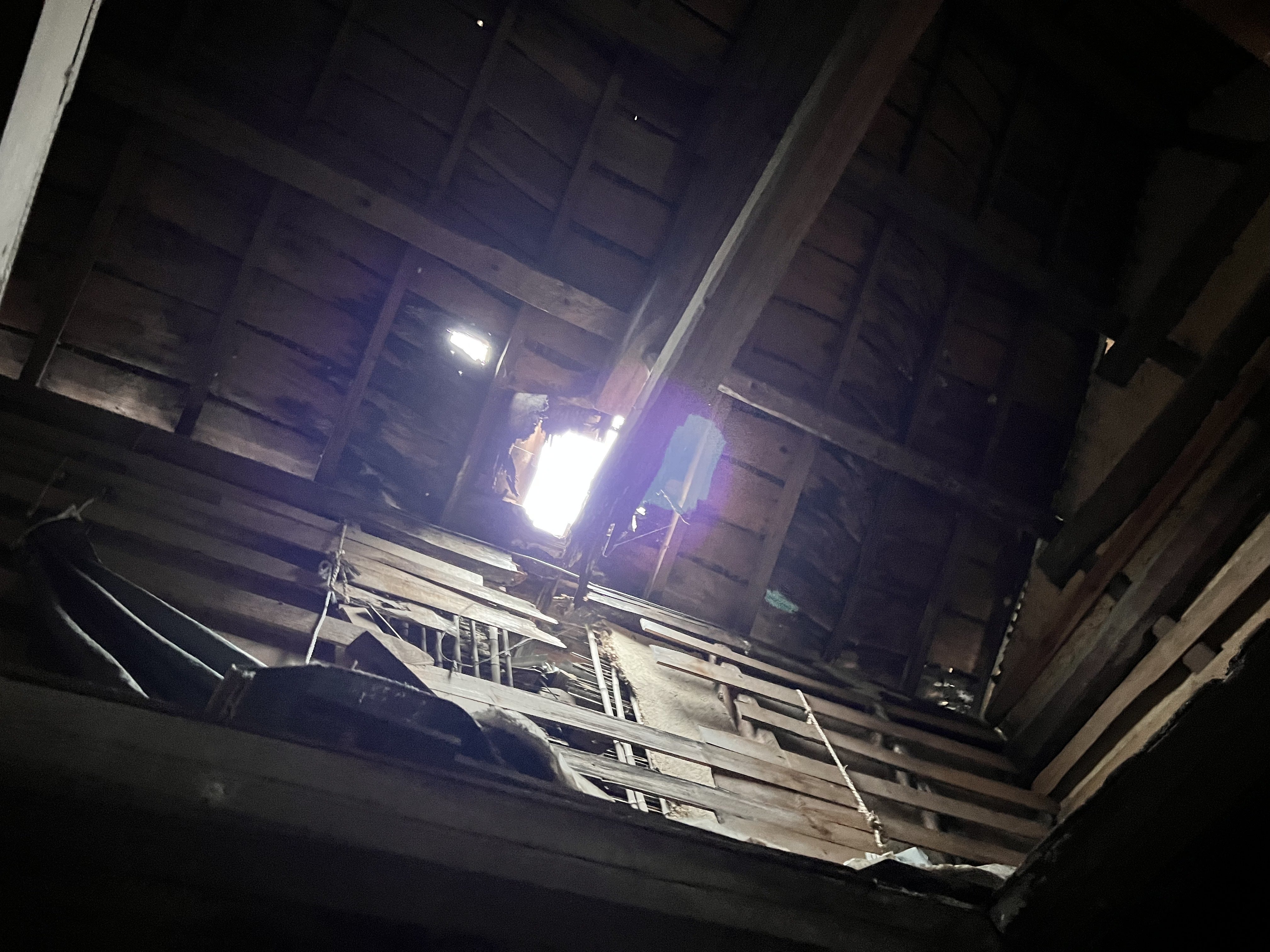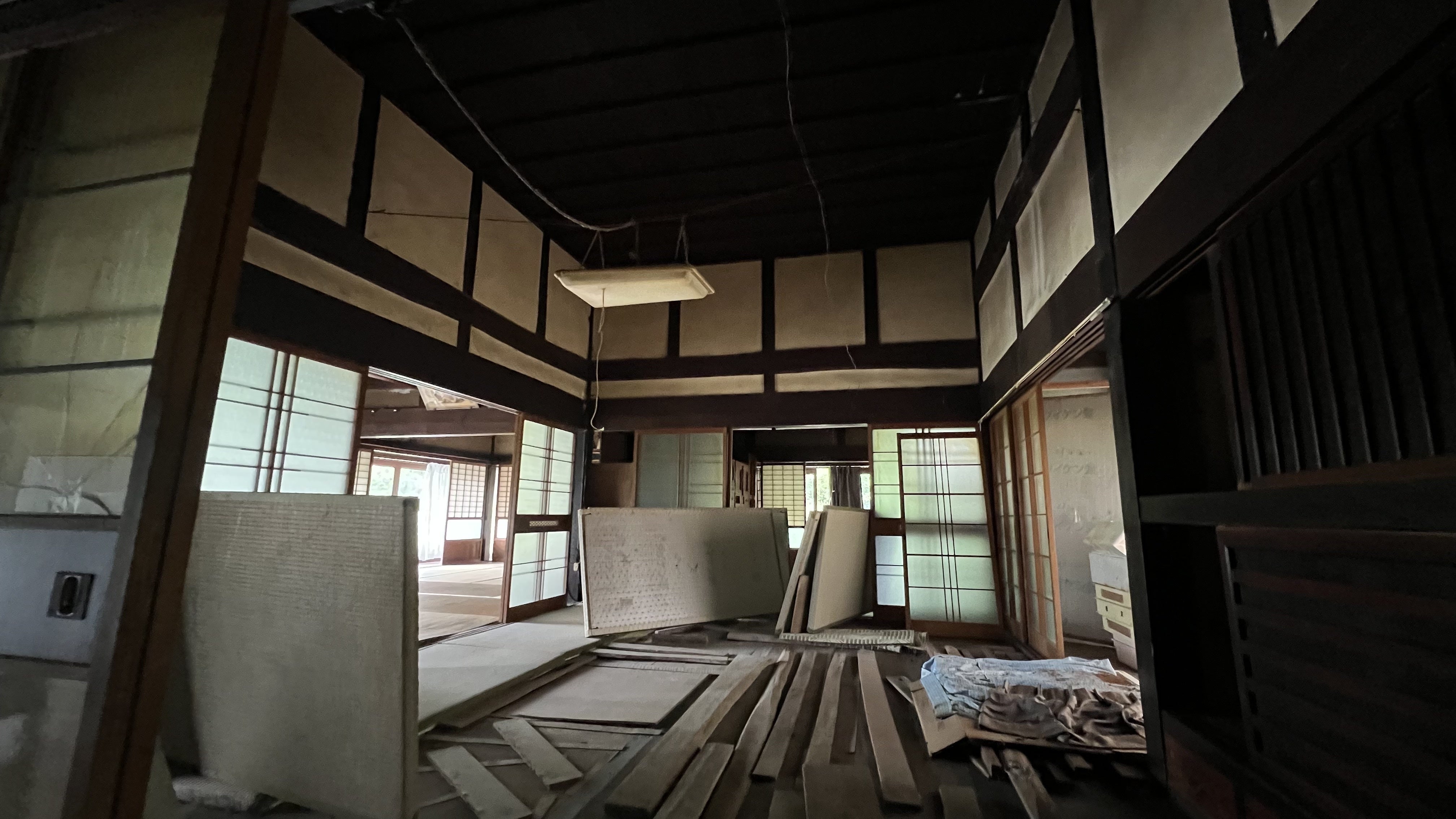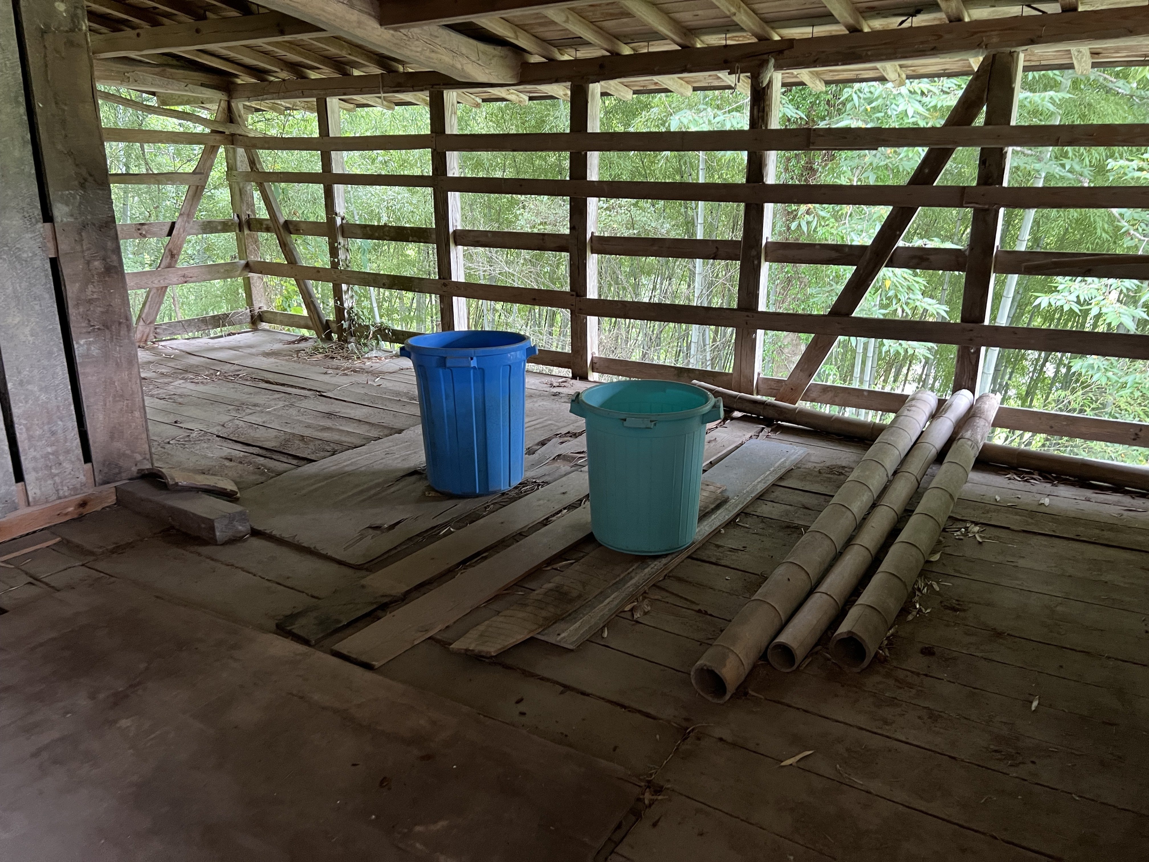 まだ、立派な佇まいの家も屋根が傷んでいました。今回はまず屋根の修繕を行い、家の保護と来られた方が雨風が凌げるようにしたいと思います。並行して裏山のヒノキ林に人が入れる道を作道し林内を整備し、収穫・製材したヒノキ材を内装の修繕に充て、完成後は山と地域を繋ぐゲストハウスとして地域活性化に役立てていければと計画中です。この取り組みが、地域の空き家活用のきっかけとなっていくことを切に願っております。まずは、私たちにできる事としての第一歩を皆さんのお力をお借りして、また皆さんと一緒に踏み出していきたいと思います。