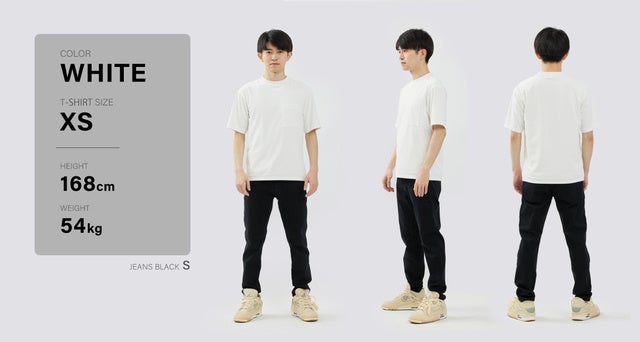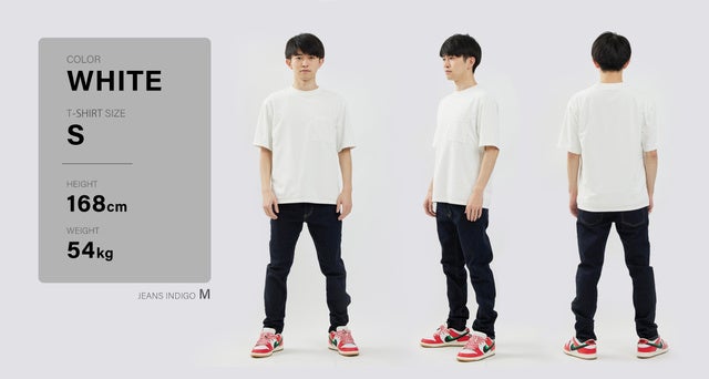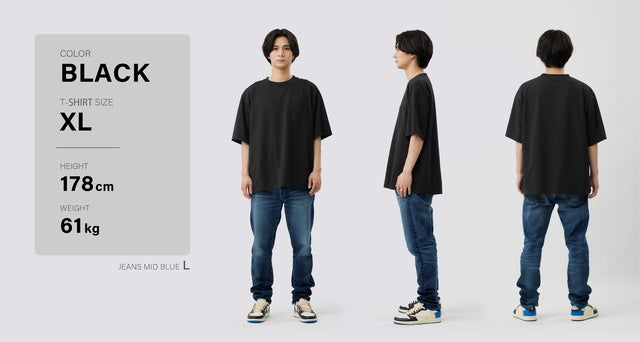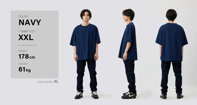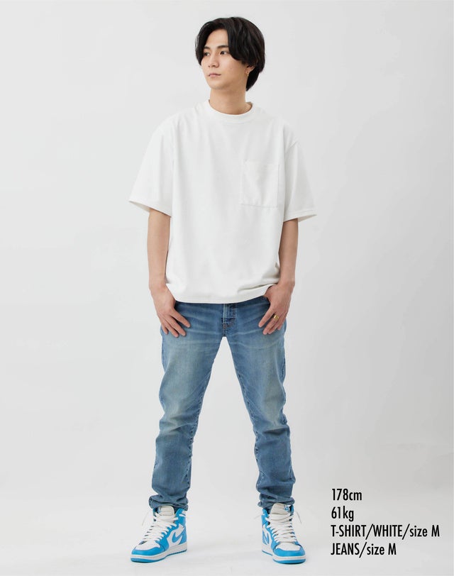 過剰なオーバーサイズはスタイルを悪く見せてしまうので、身幅や肩幅にはゆとりを入れつつも、着丈はコンパクトにすることで、全体としてスタイルが良く見える黄金バランスになるように細かくサイズ調整しています。
