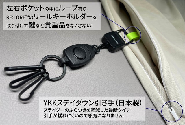 ポケット口にはYKKファスナー付きだから安心!