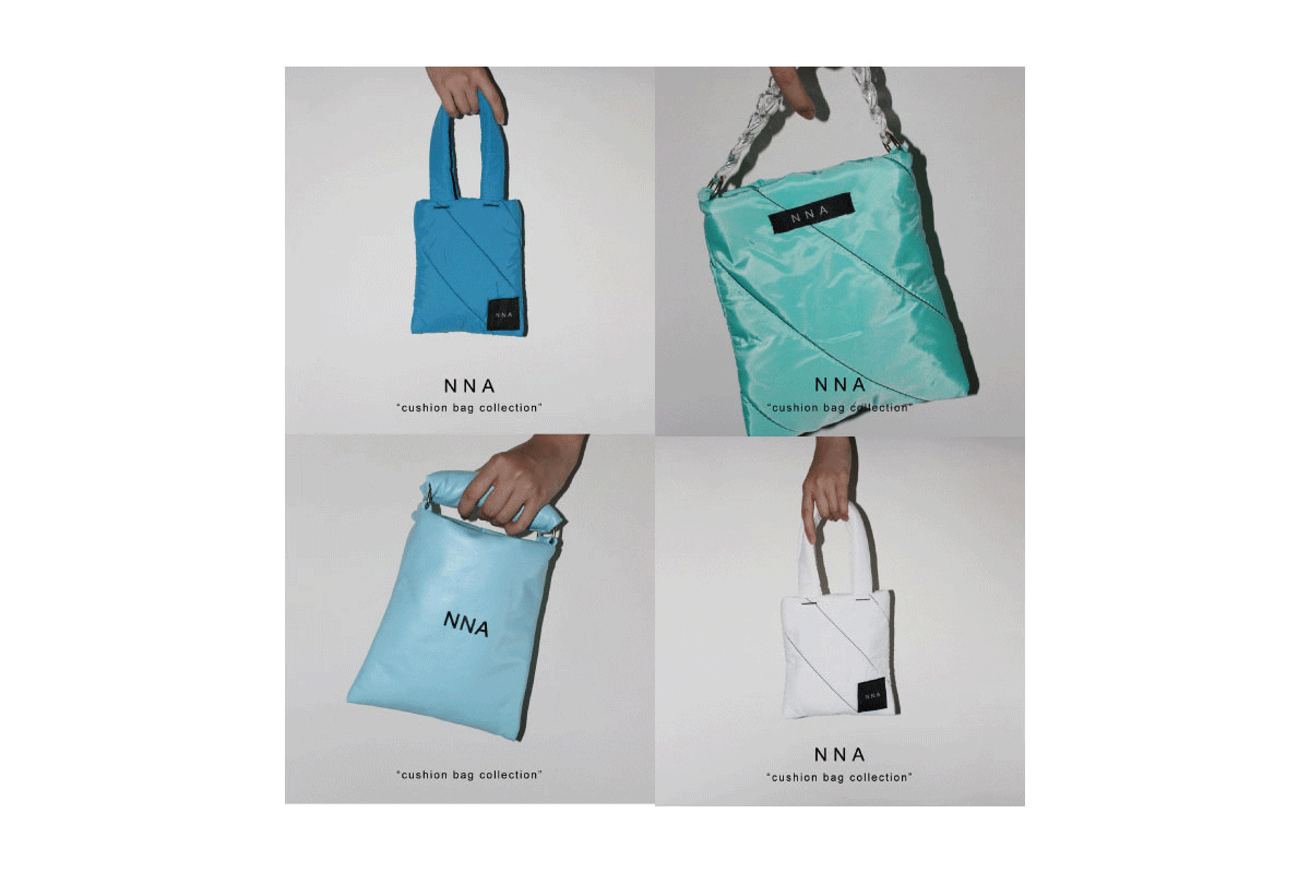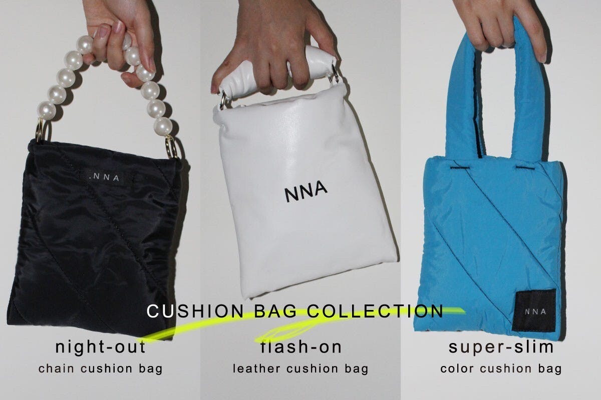 今回ご用意したNNAクッションバッグは、全部で3種類。多様化する個性を意識して、カラーも豊富に取りそろえました。