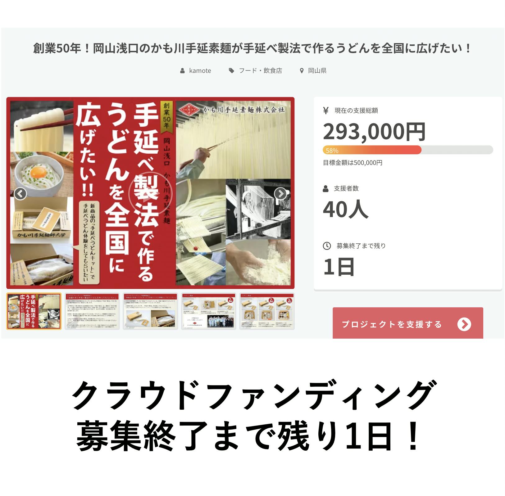 かも川手延素麺より皆様へ!vol.21『クラウドファンディング終了まであと1日』
