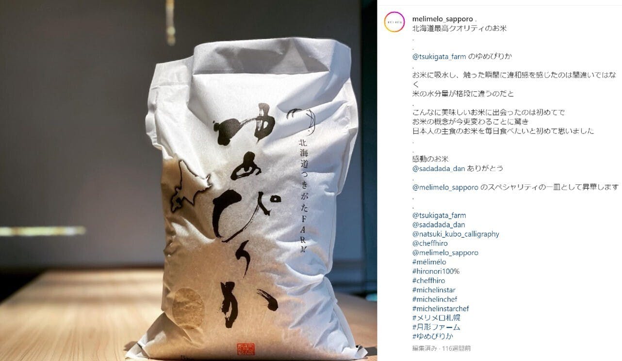 実際に月形にお越しいただき、田んぼを見せ山を見せ水を見せ…「これは、本当にすごいお米です」と、Instagramでご紹介いただいたところ、更なる出会いが。