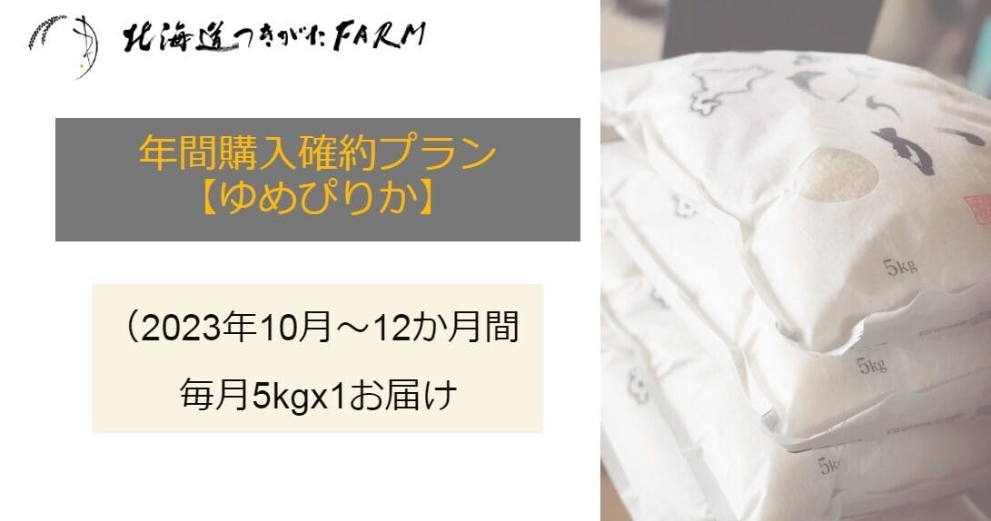 北海道つきがたFARM最高峰米の「ゆめぴりか」を、なんと来年の新米からスタートして、一年間、毎月お届けさせていただくプランです。新米時期を過ぎても変わらないつきがたFARMのお米の品質を感じていただけるプランです。