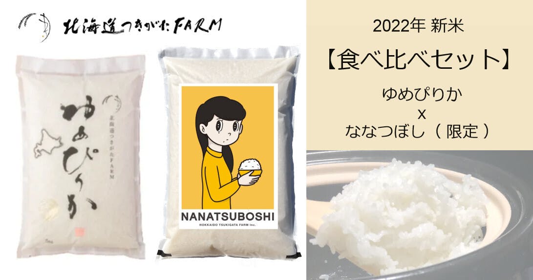4,「食べ比べセット」ななつぼし【橋爪さん限定デザイン】&ゆめぴりか ⇒5kgずつ、⇒10㎏(5kgx2つずつ)