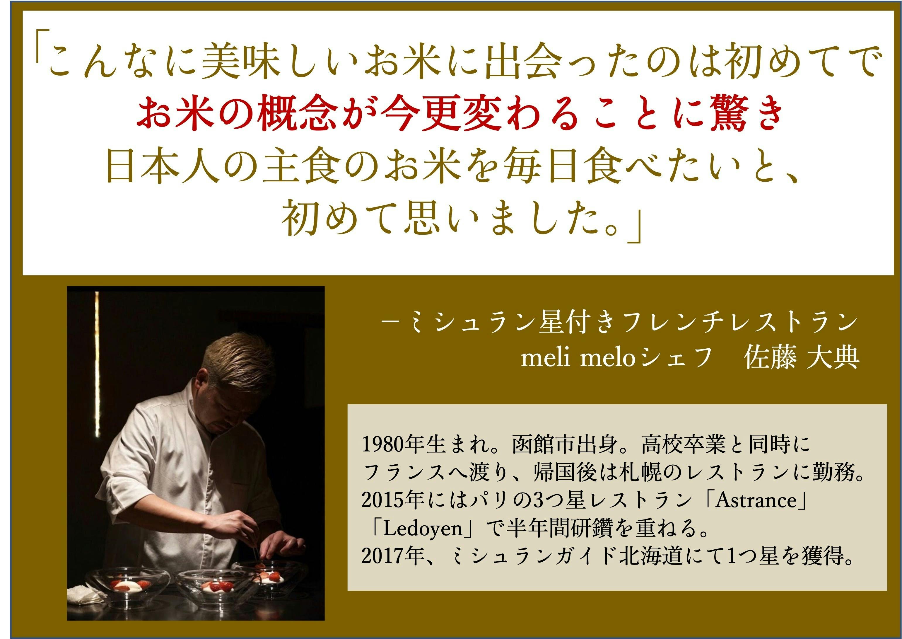 「研ぎ始めた瞬間から違いがわかる」「お米の概念が変わるほど旨い」と、料理のプロも認める品質、圧倒的な美味しさが誇りです。
