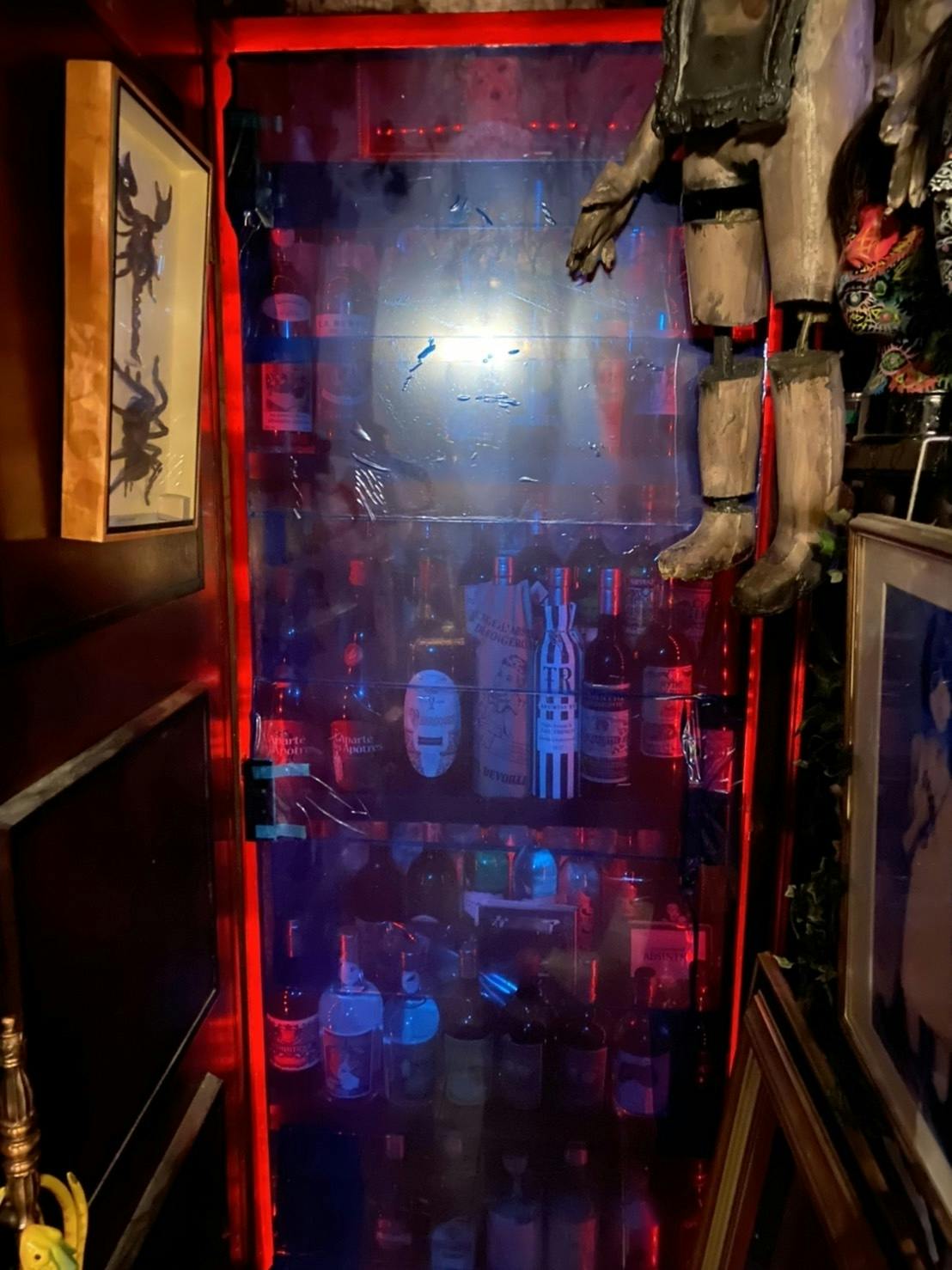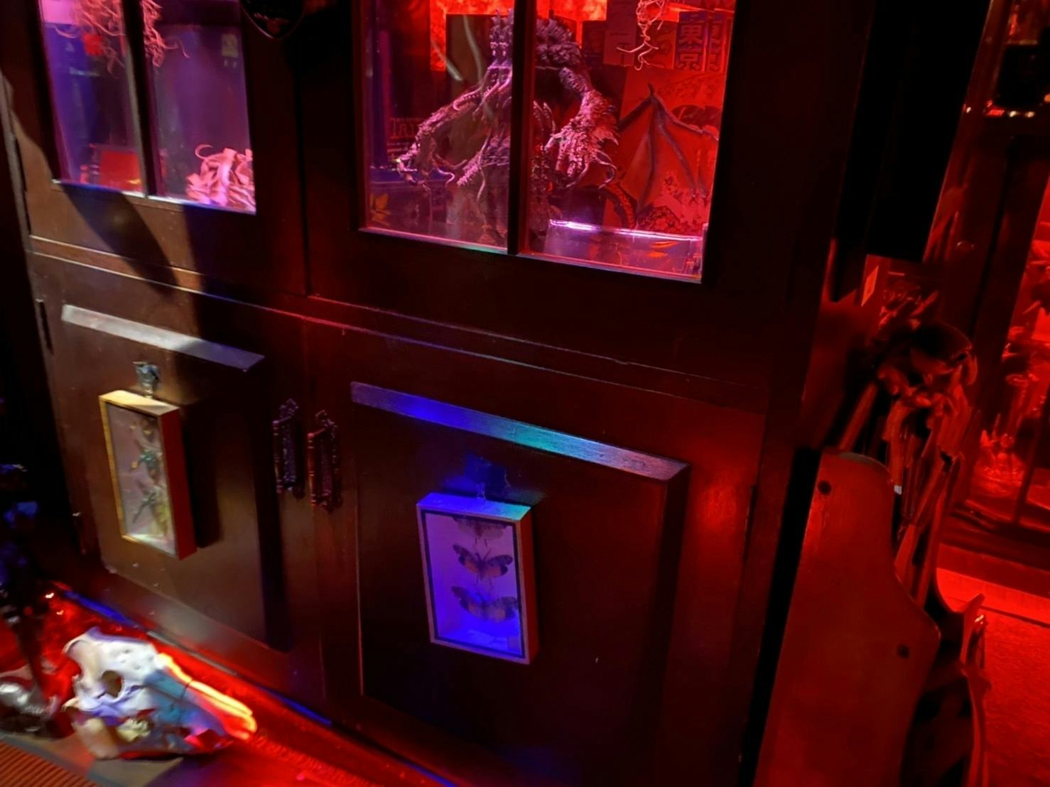 この棚には、約80~100本のアブサンがディスプレイされています。現在、アブサンは世界、とくにヨーロッパ方面からの輸入品だけでなく、日本国内でも国産アブサンを製造される蒸留所が増えてきました。昨年は禁酒の呼びかけもあり、お酒を提供できず在庫を減らすこともできませんでした。もちろん当館はバーである為、アブサン以外のお酒やドリンクも数多くあります。このまま月日が流れると、さらに保管場所がなくなりパンク。営業時の提供も苦闘することになるのは目に見えております。汗