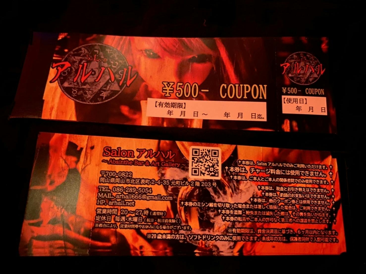 ※また、全リターン共通として、Salonアルハルにて使用できる。初めての方でも入館できる招待券及び-500円相当の割引券を追加提供として同封させていただきます。割引詳細は、下記【企画・販売元】のチャージ料金について記載しております。ご確認ください。