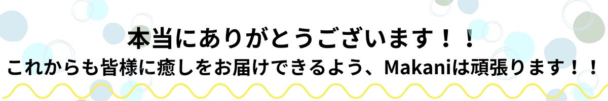 皆様から頂いたご支援はMakaniでのサービス拡充に大切に使わせて頂きます。まだまだオープンしたばかり、そよ風のような優しく心地よい場所になれるよう、そして皆様の健康と美をサポートできるよう邁進していきます。