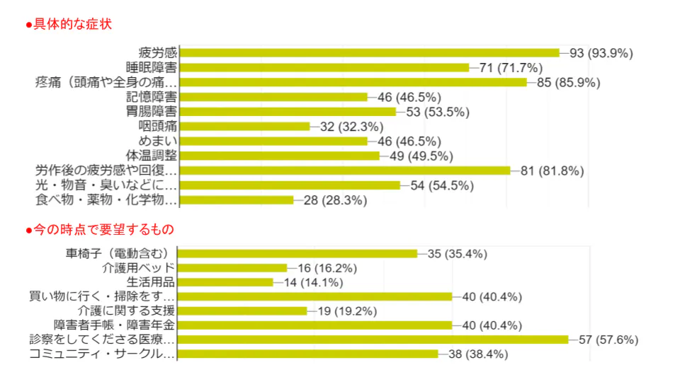 また、難病指定されていないため障害者手帳・障害年金の取得も厳しく、診てくださる医療機関も少ないため、クラッシュ(労作後の極度な疲労)を覚悟のうえで、遠方の専門医に行かれる方も出てまいりました。